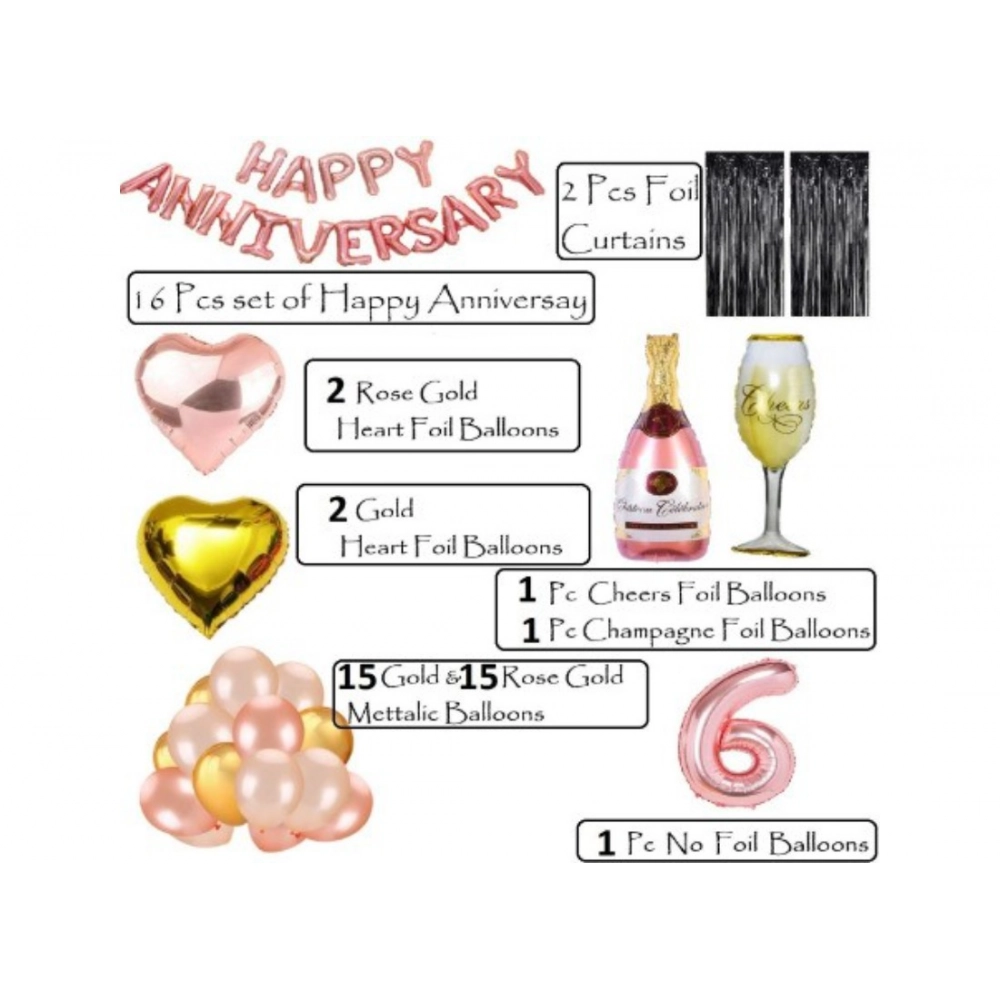 ?? Package Contains: 1 Happy Anniversary Rose Gold Foil 30 HD Metallic Rose Gold & Gold Balloons 2 Rose Gold Heart shape Foil Balloons + 2 Gold Heart Shape Foil Balloons 1 Pc Cheers Foil Balloon & 1 pc Rose Gold Foil Balloon + 2 Black Foil Fringe Curtain ,Rose gold Selective foil number