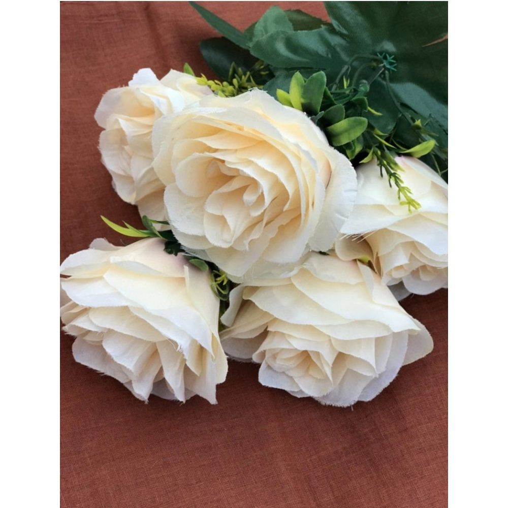 Artificial Flowers Bunch Bouquet Of 5 Champagne Roses For Home Decoration