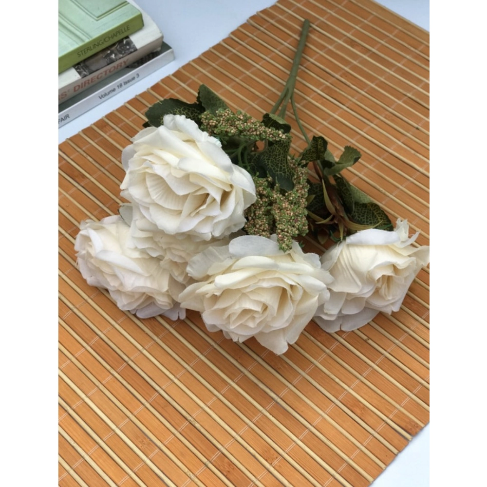 Artificial Flowers Bunch Bouquet of 5 Vintage Garden Roses for Home Decoration