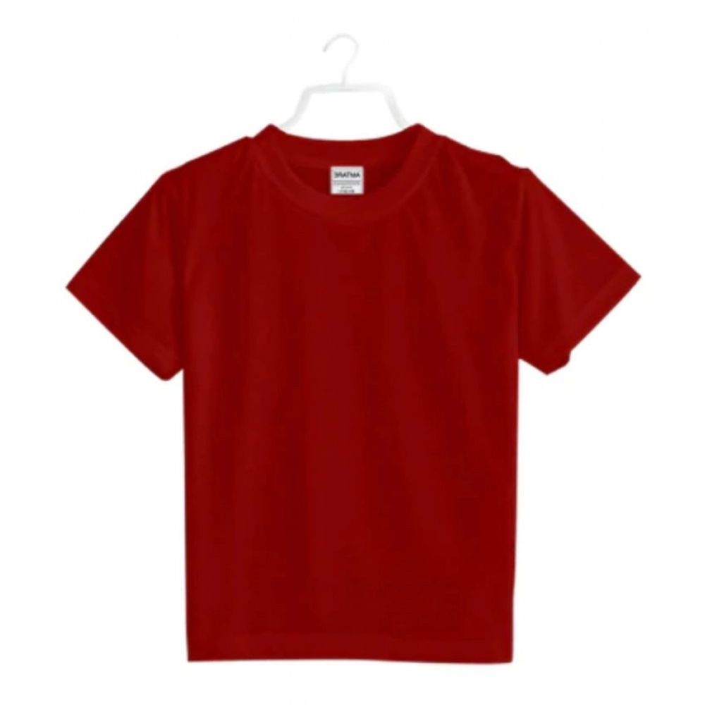 Boys Cotton Plain Half Sleeve TShirt (Maroon)