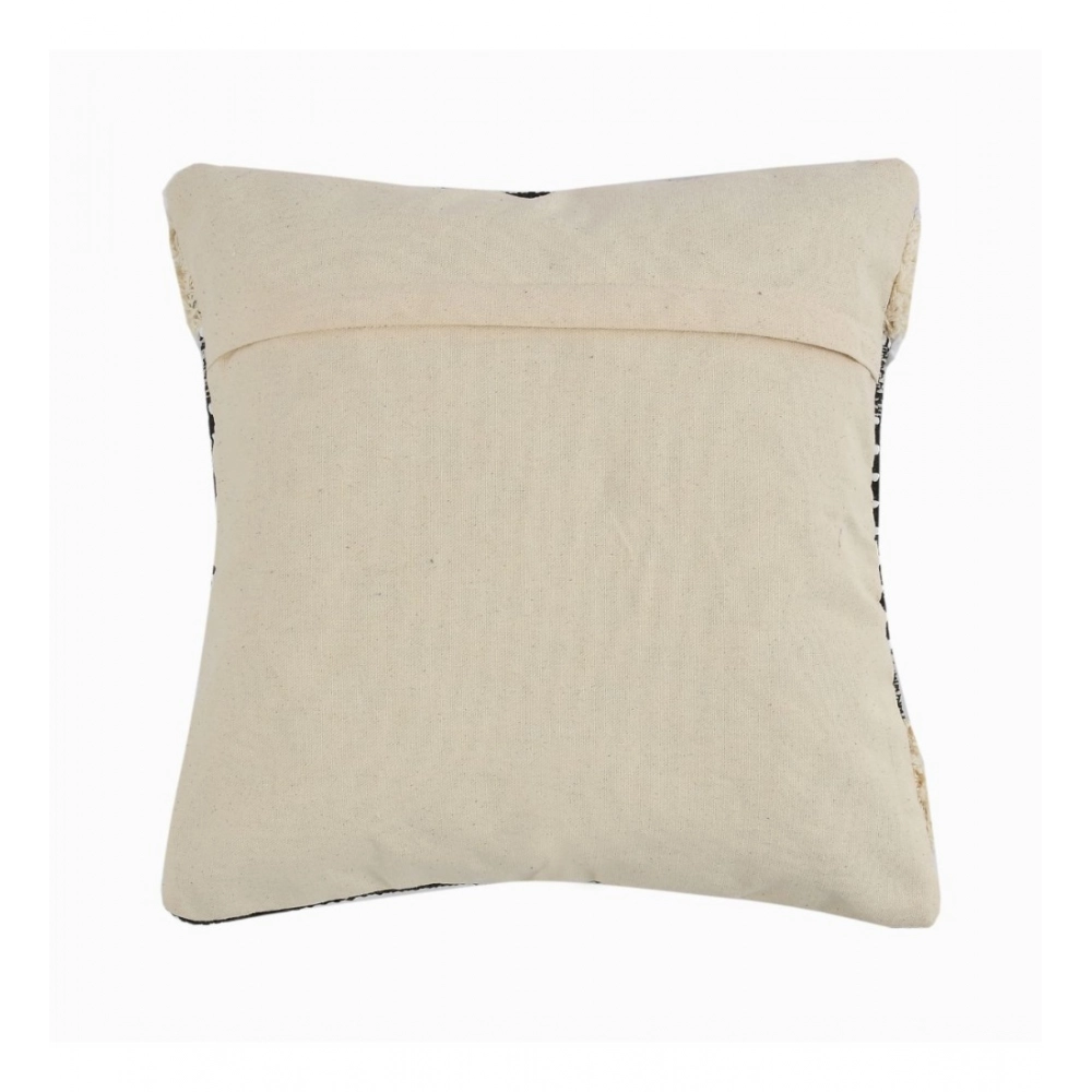 Cotton Diamond Handcrafted Pit Loom Cushion Cover 16×16 Inch Pack of 2 (Black Cream)