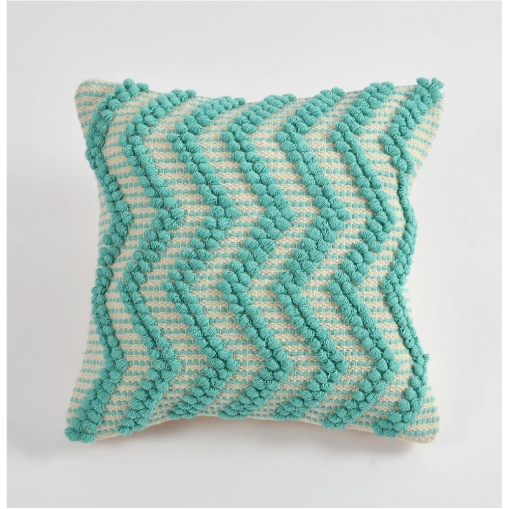 Cotton Handcrafted Pit Loom Cushion Cover 16×16 Inch Pack of 2 (Sea Green)