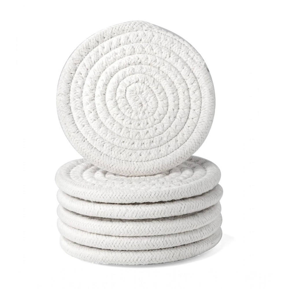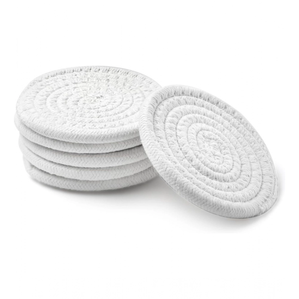 Cotton Rope Drink Coasters 6 Pcs Set (White)