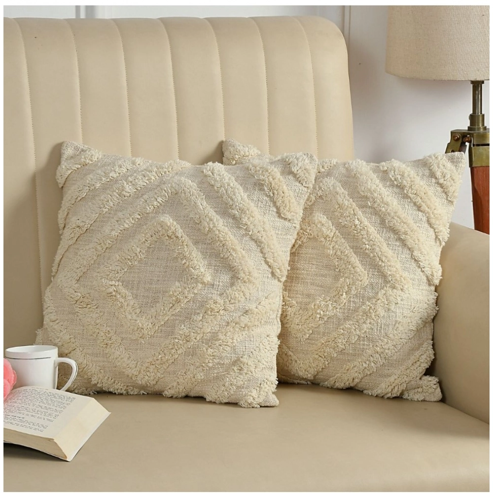 Cotton Tufted Cushion Pillow Cover 16×16 Inch Pack of 2