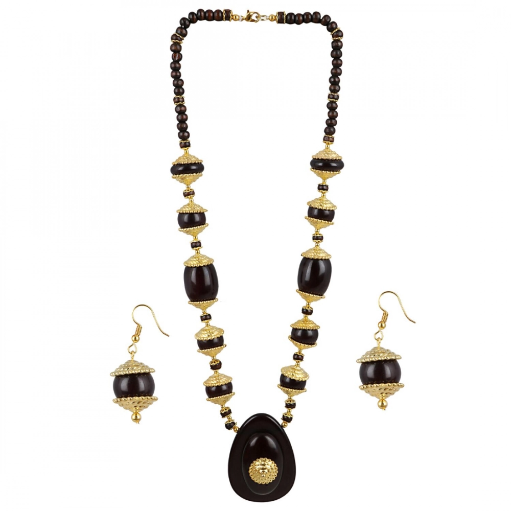 Designer Dark Brown and Golden Beads South Style Necklace,