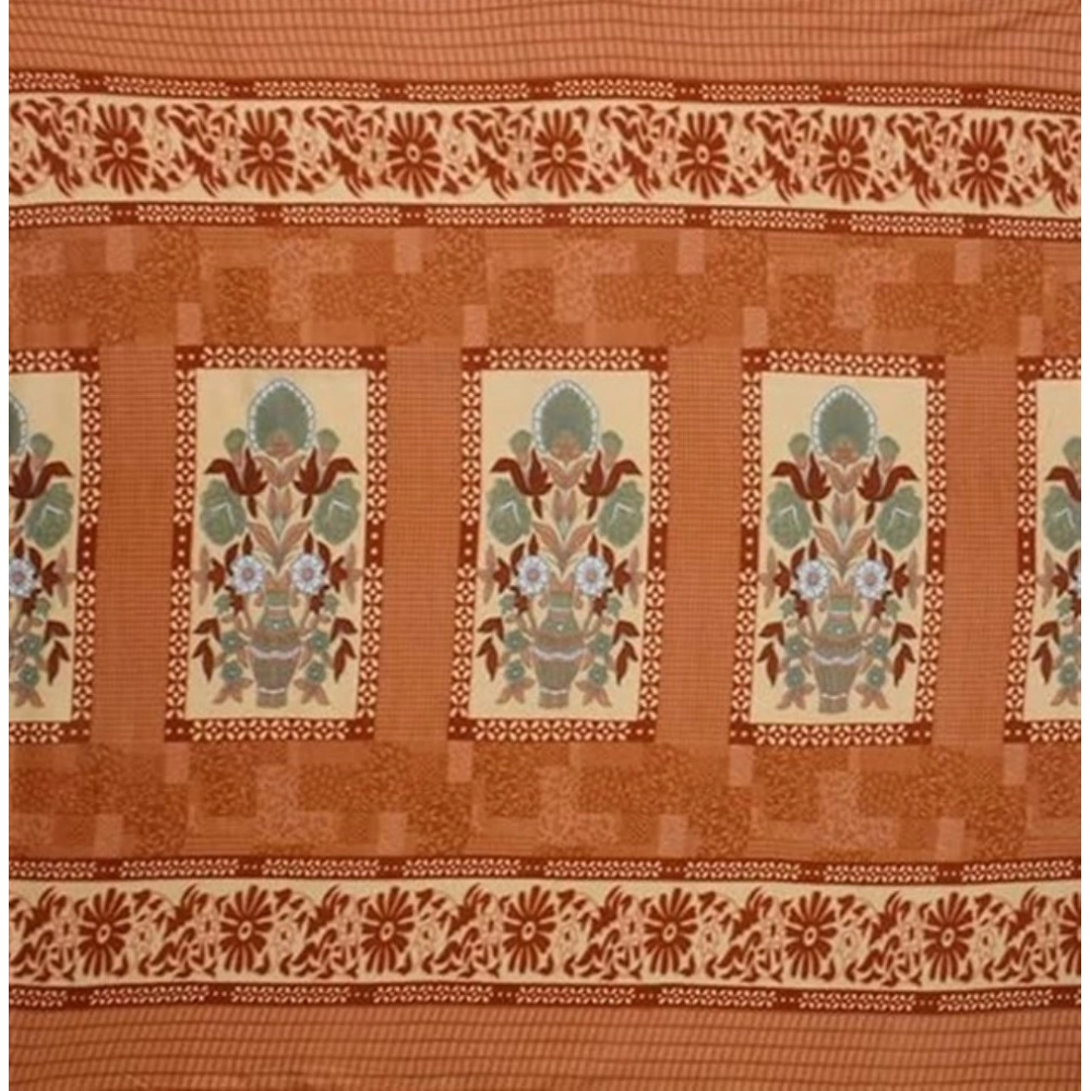 Fleece Floral Printed Double Polar Warm Bedsheet with 2 Pillow Cover (Orange)