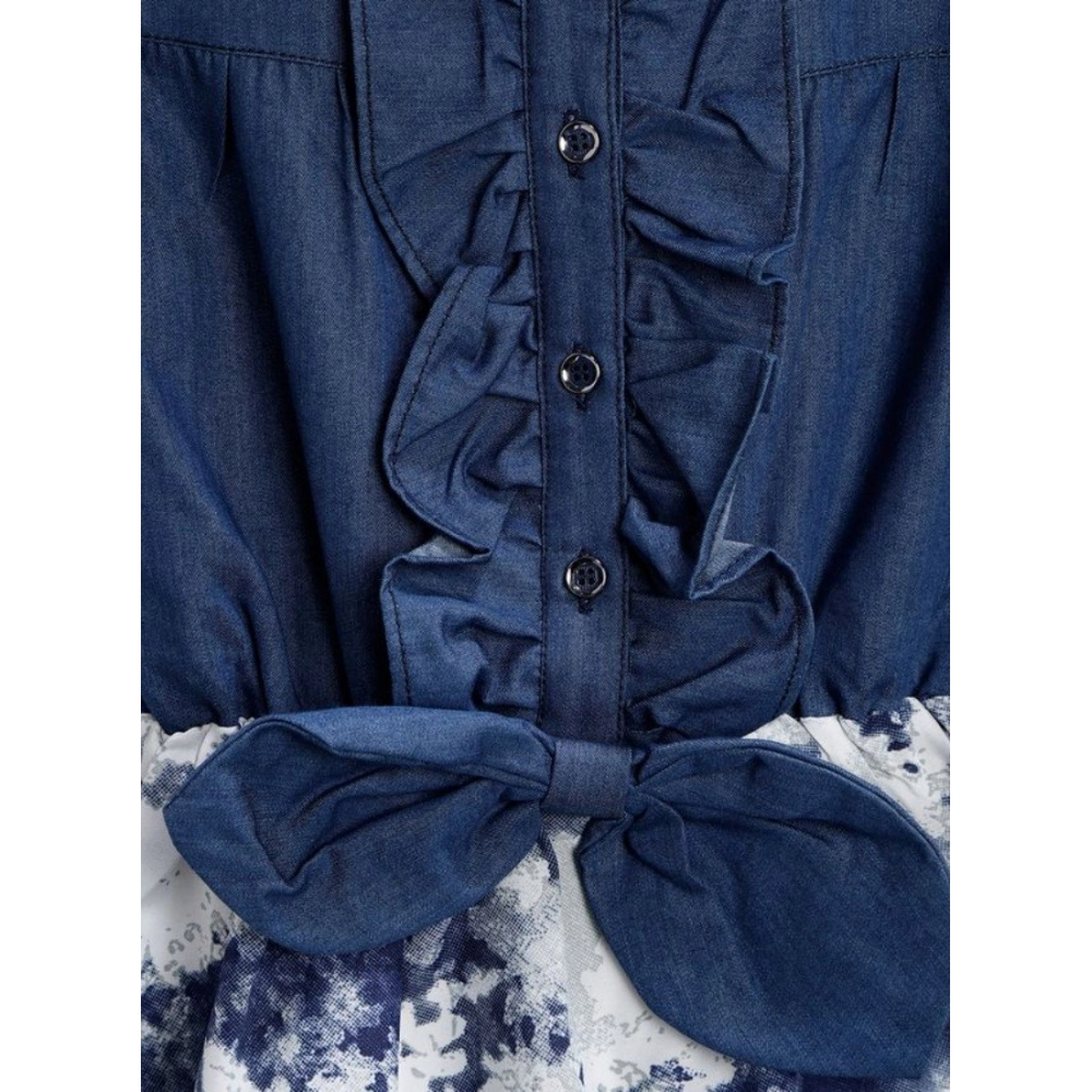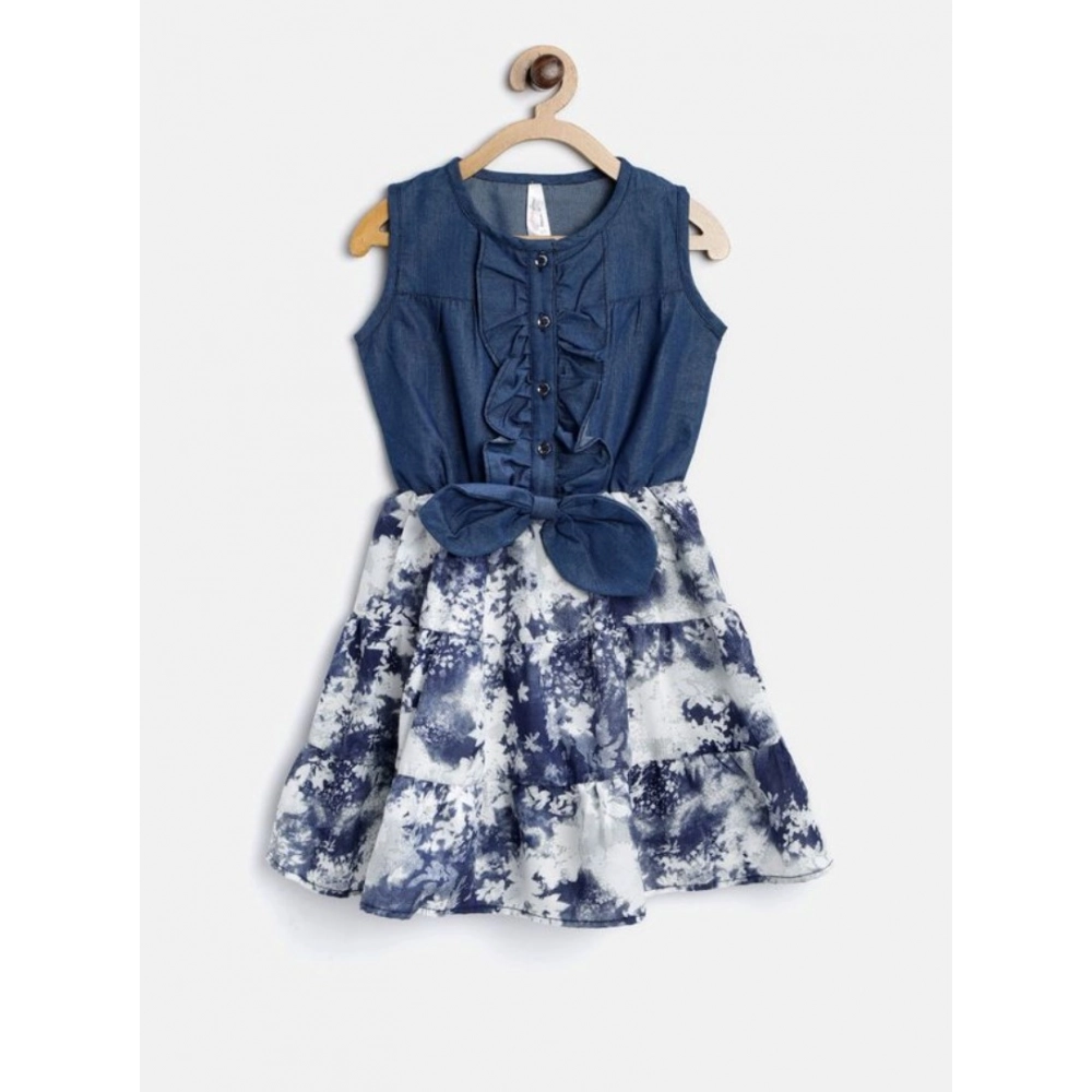 Girl’s Denim-Polyester Crepe Solid Sleeveless Round Neck Dress