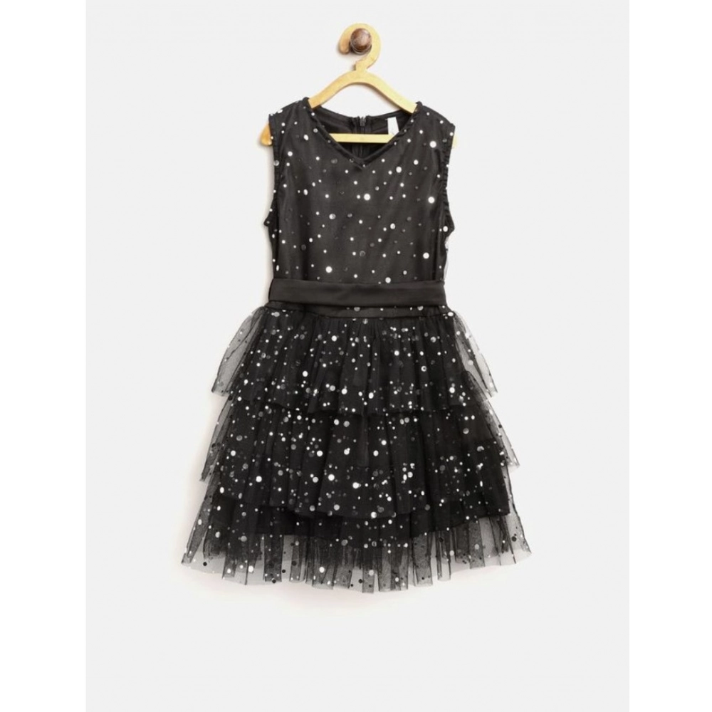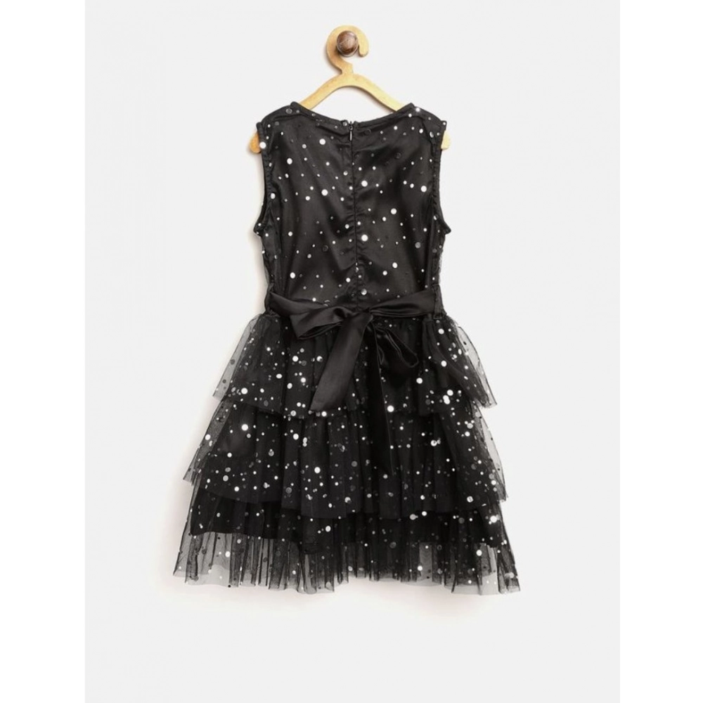 Girl’s Net Embellished Sleeveless V-Neck Dress (Black)