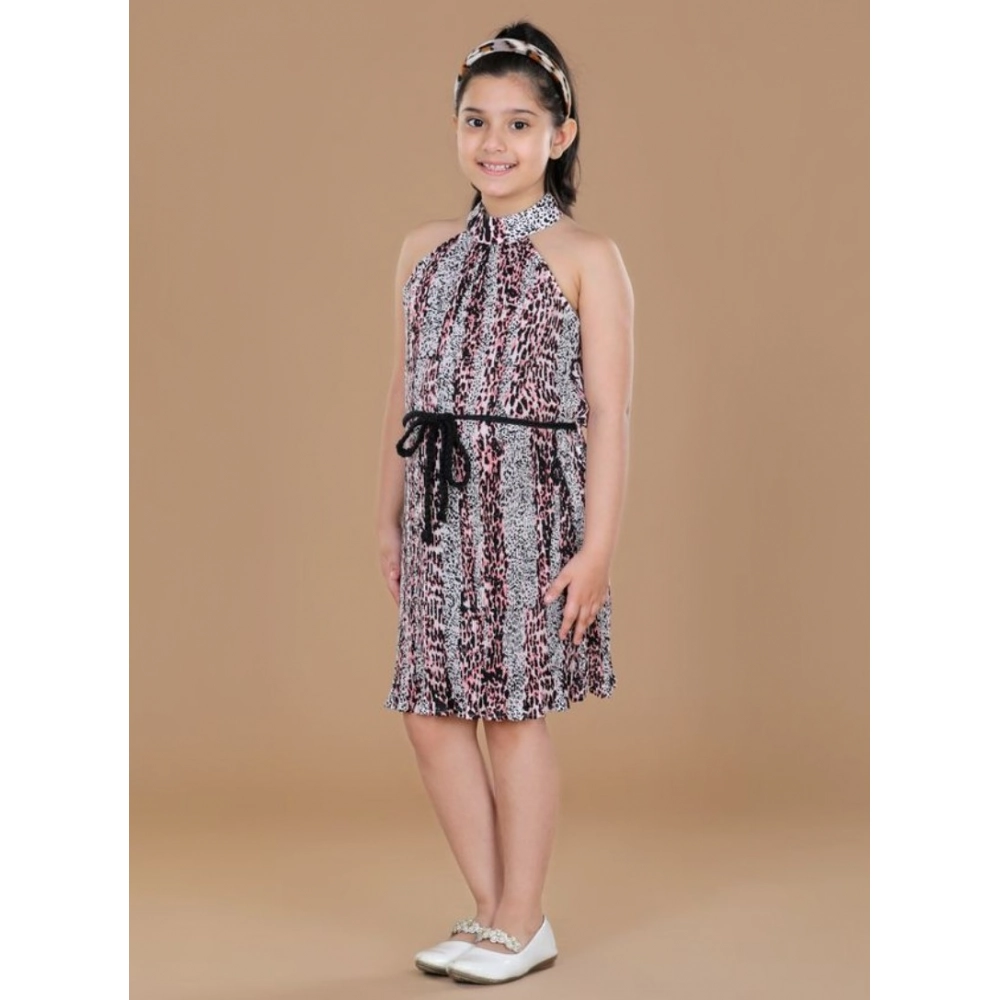 Girl’s Polyester Crepe Printed Sleeveless Round Neck Dress