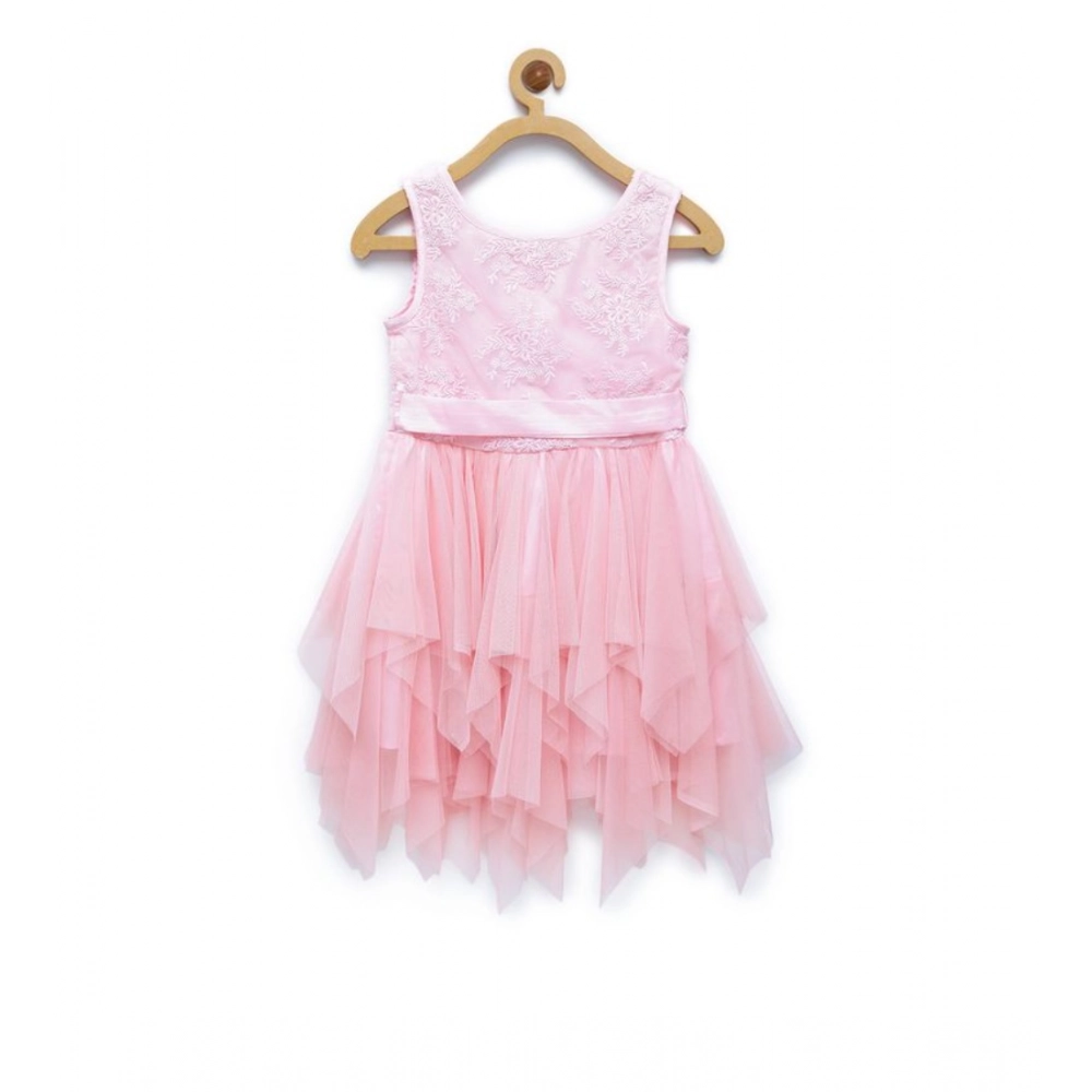 Girl’s Polyester Net Floral Printed Sleeveless Round Neck Dress