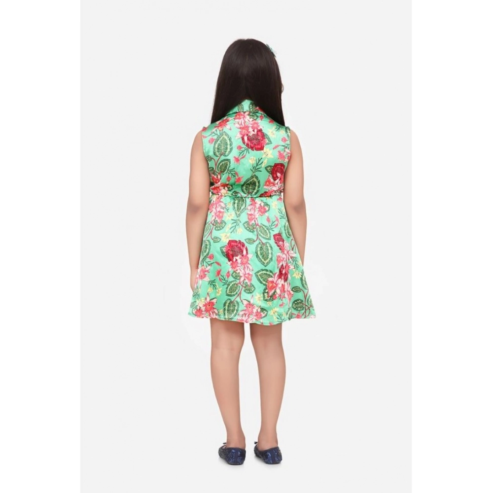 Girl’s Satin Floral Printed Sleeveless Shirt Collar Dress