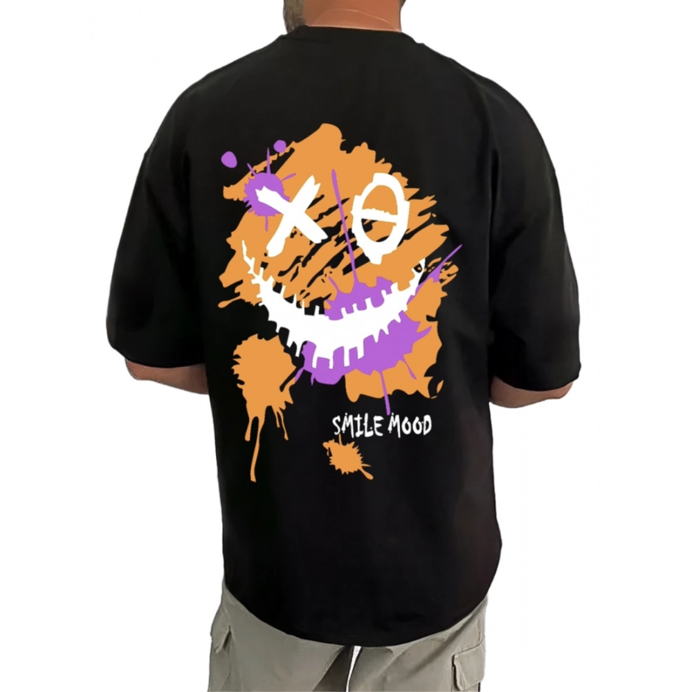 Men’s Casual Cotton Blend Printed Round Neck Half Sleeve T-Shirt (Black)