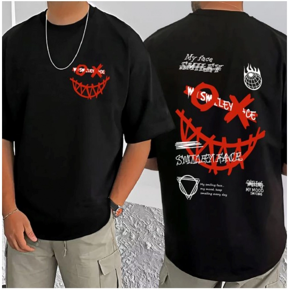 Men’s Casual Cotton Blend Printed Round Neck Half Sleeve T-Shirt (Black)