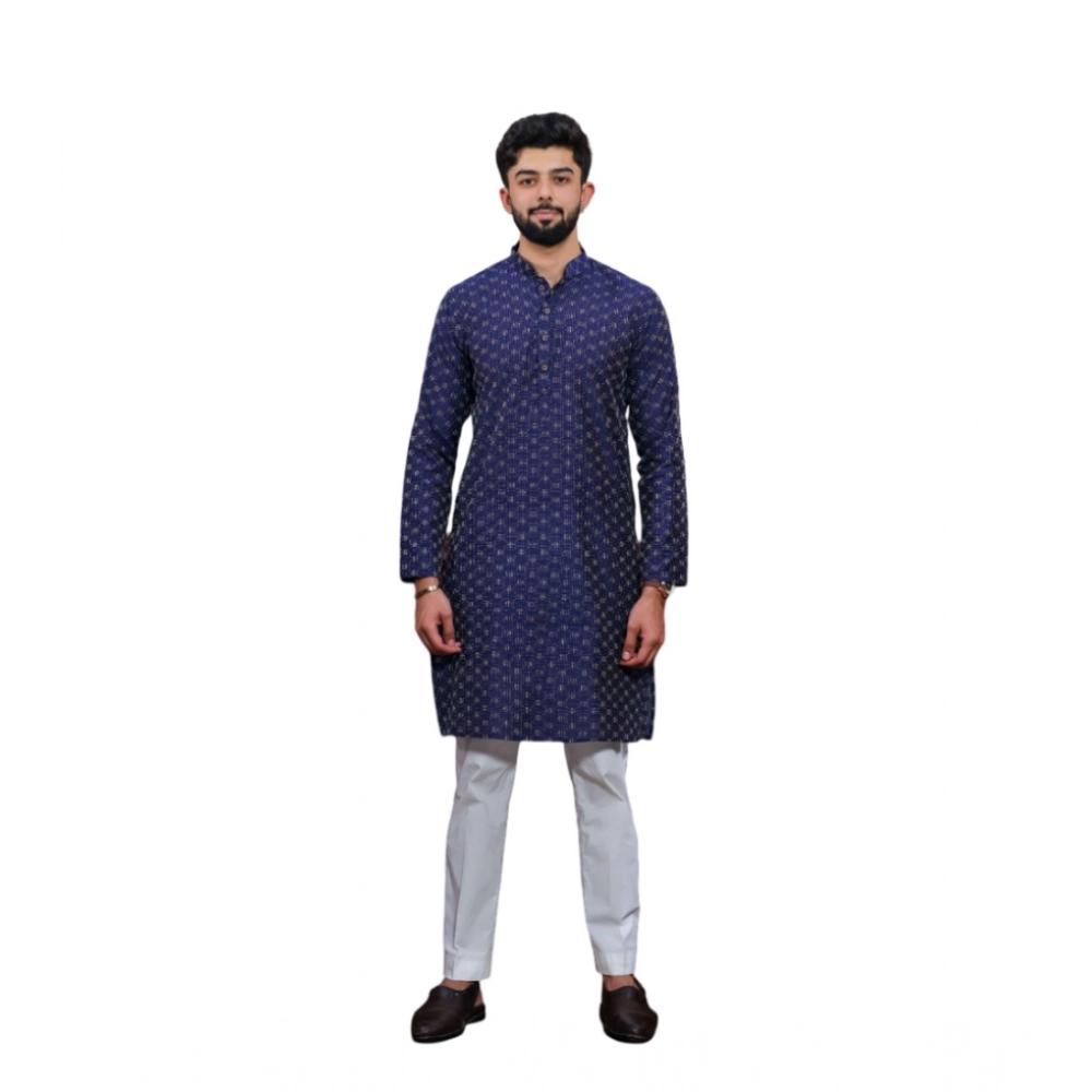 Men’s Casual Cotton Printed Full Sleeve Kurta Pyjama Set (Blue)