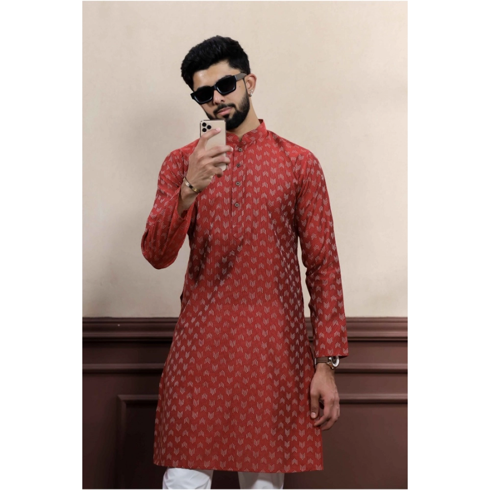 Men’s Casual Cotton Printed Full Sleeve Kurta Pyjama Set