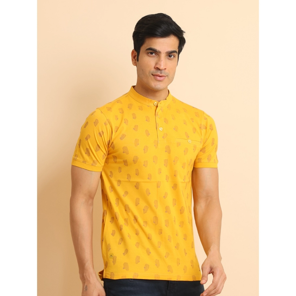 Men’s Casual Cotton Printed Mandarin Collar Half Sleeve T-Shirt