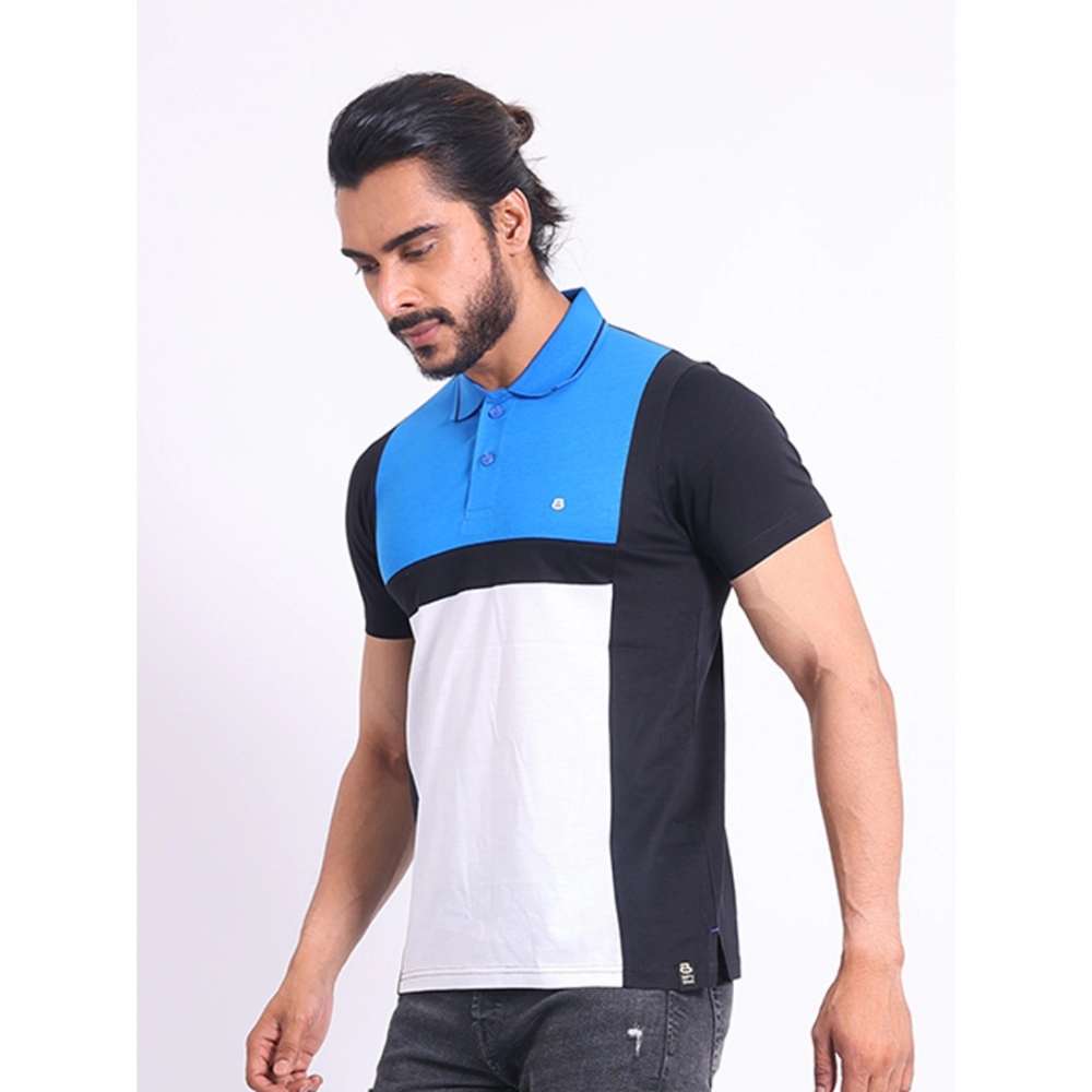 Men’s Casual Cotton Printed Polo Neck Half Sleeve T-Shirt (Black)