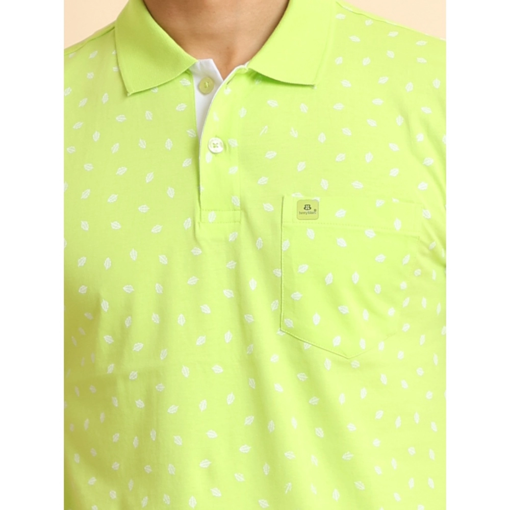 Men’s Casual Cotton Printed Polo Neck Half Sleeve T-Shirt (Green)