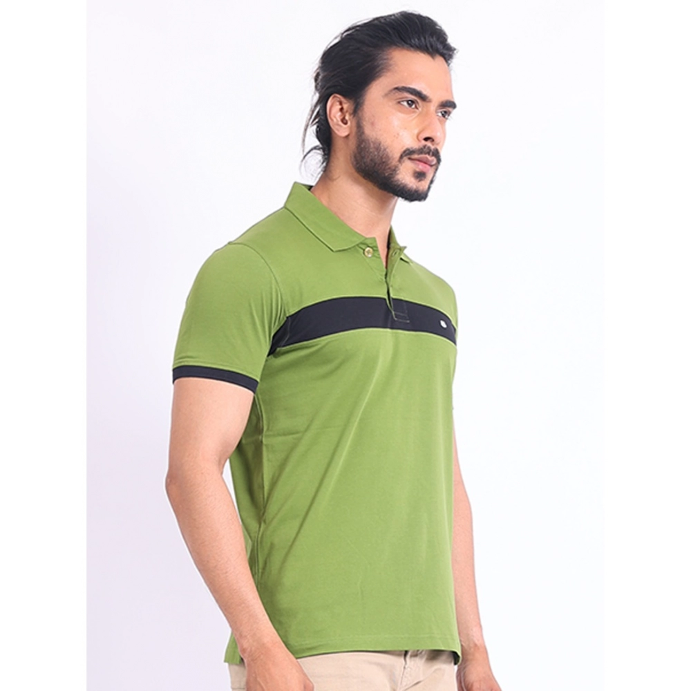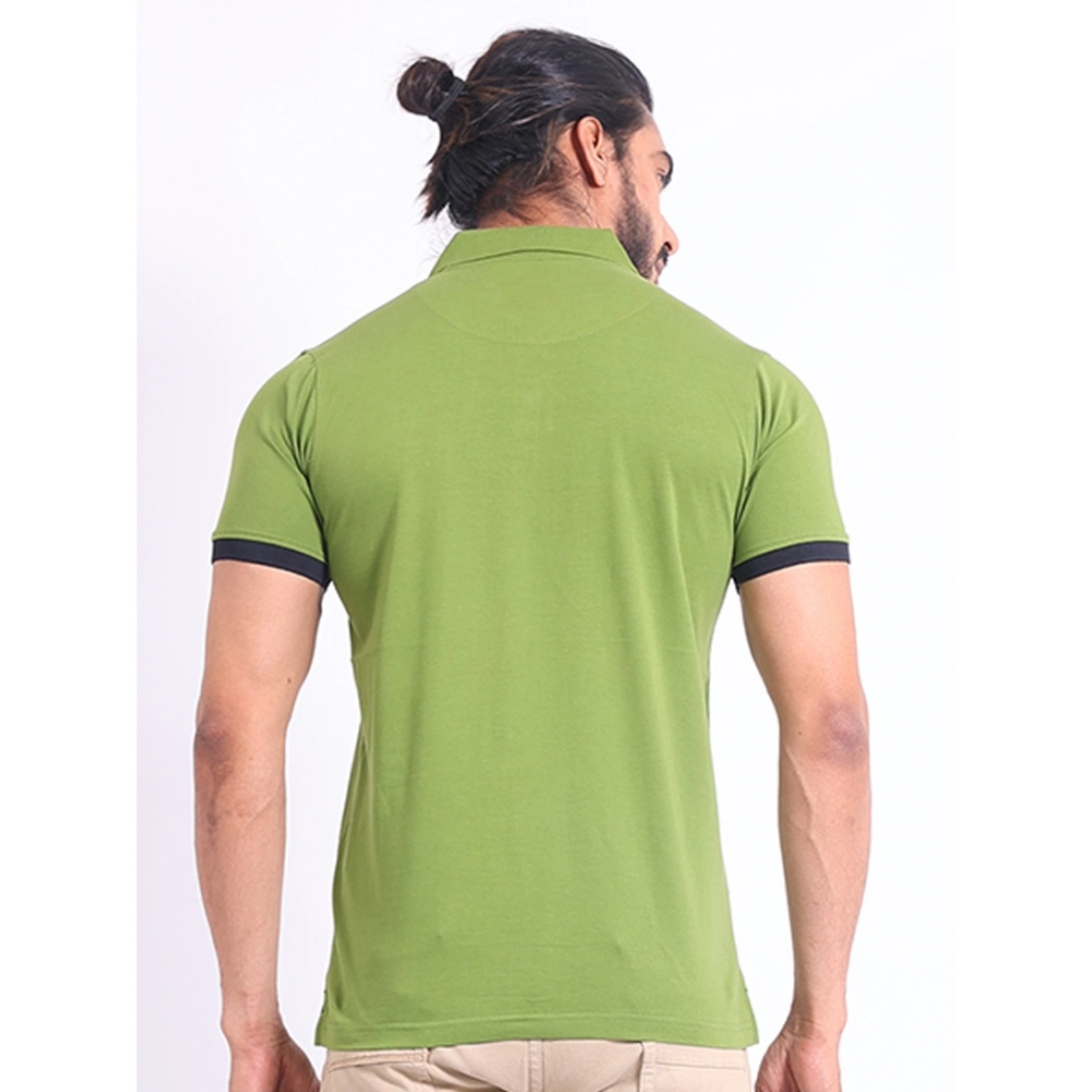 Men’s Casual Cotton Printed Polo Neck Half Sleeve T-Shirt (Green)