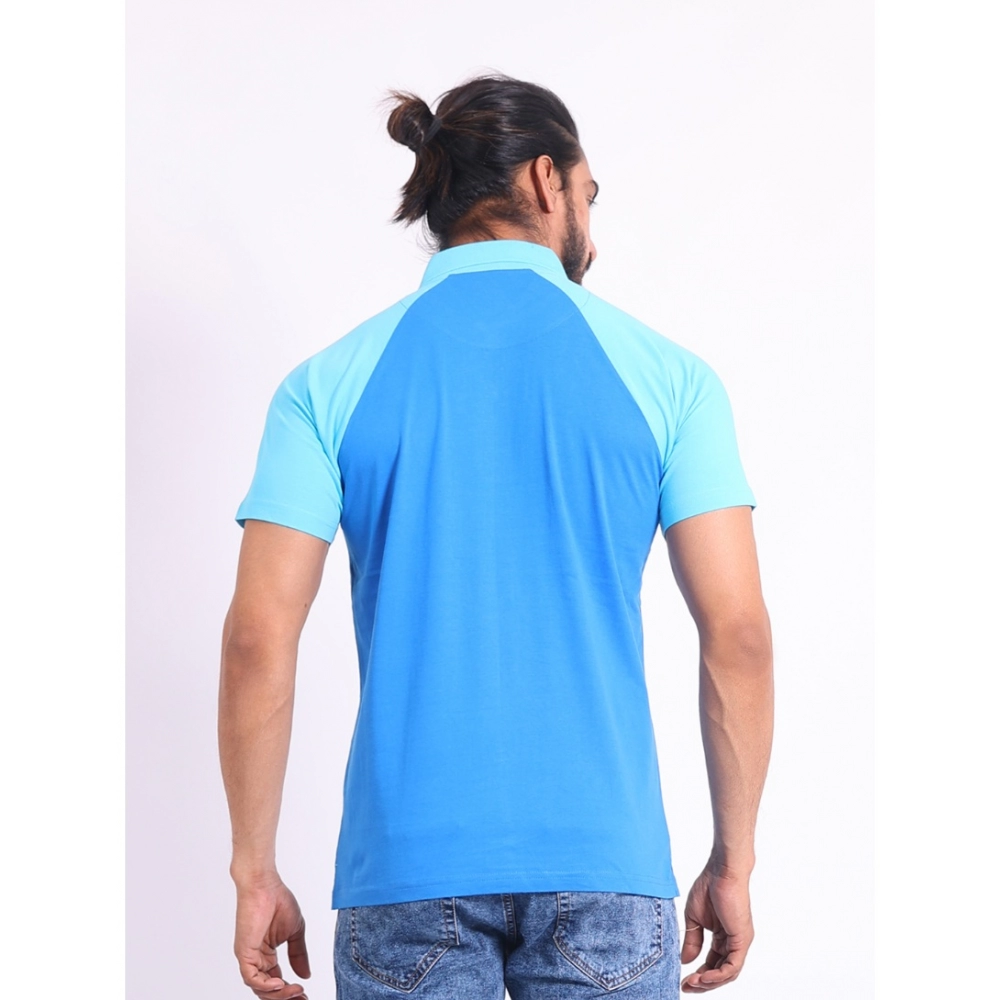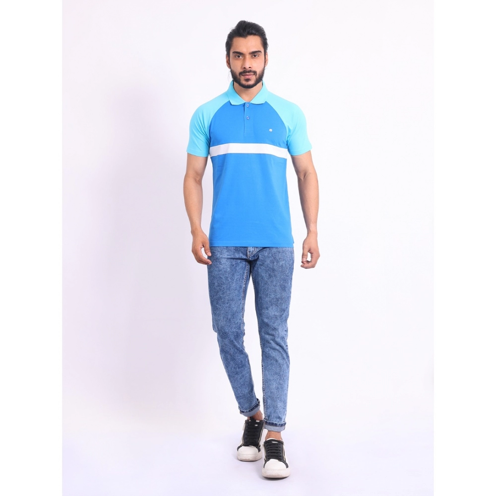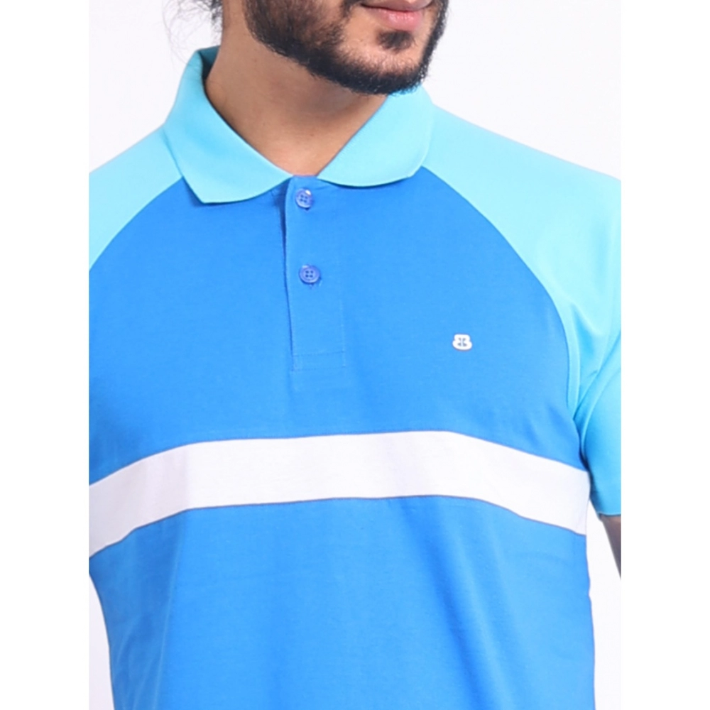 Men’s Casual Cotton Printed Polo Neck Half Sleeve T-Shirt (Skyblue)