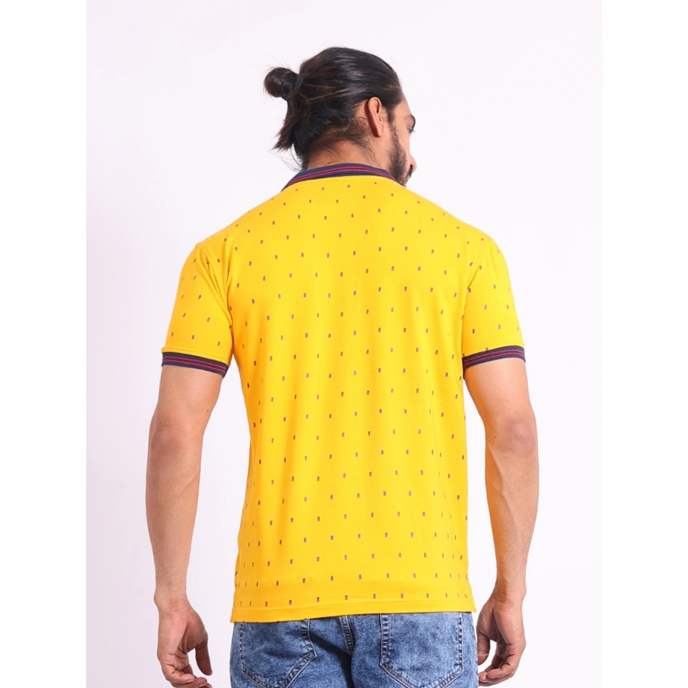 Men’s Casual Cotton Printed Polo Neck Half Sleeve T-Shirt (Turmeric)