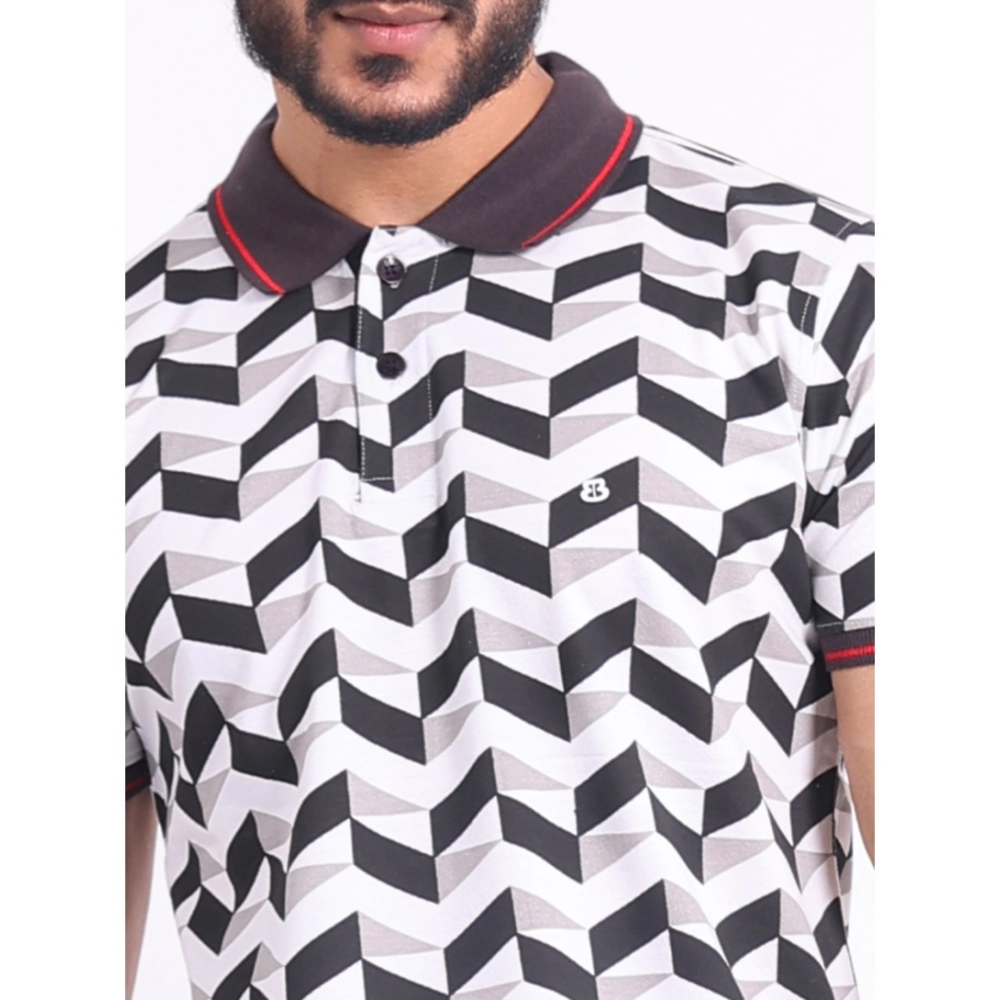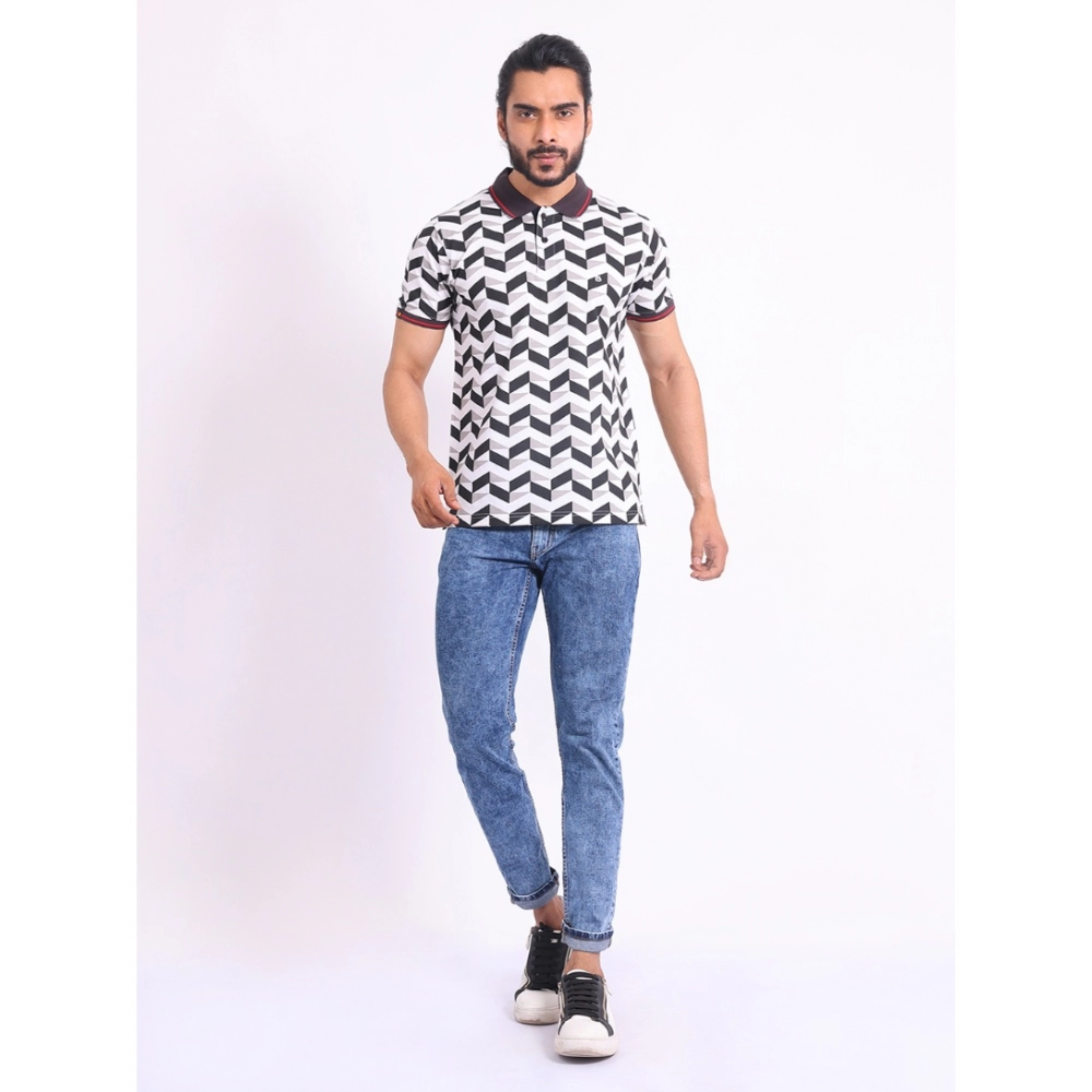Men’s Casual Cotton Printed Polo Neck Half Sleeve T-Shirt (White)