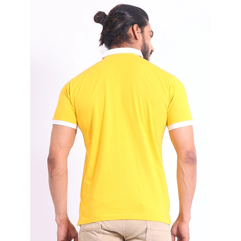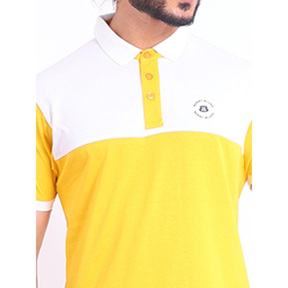Men’s Casual Cotton Printed Polo Neck Half Sleeve T-Shirt (Yellow)