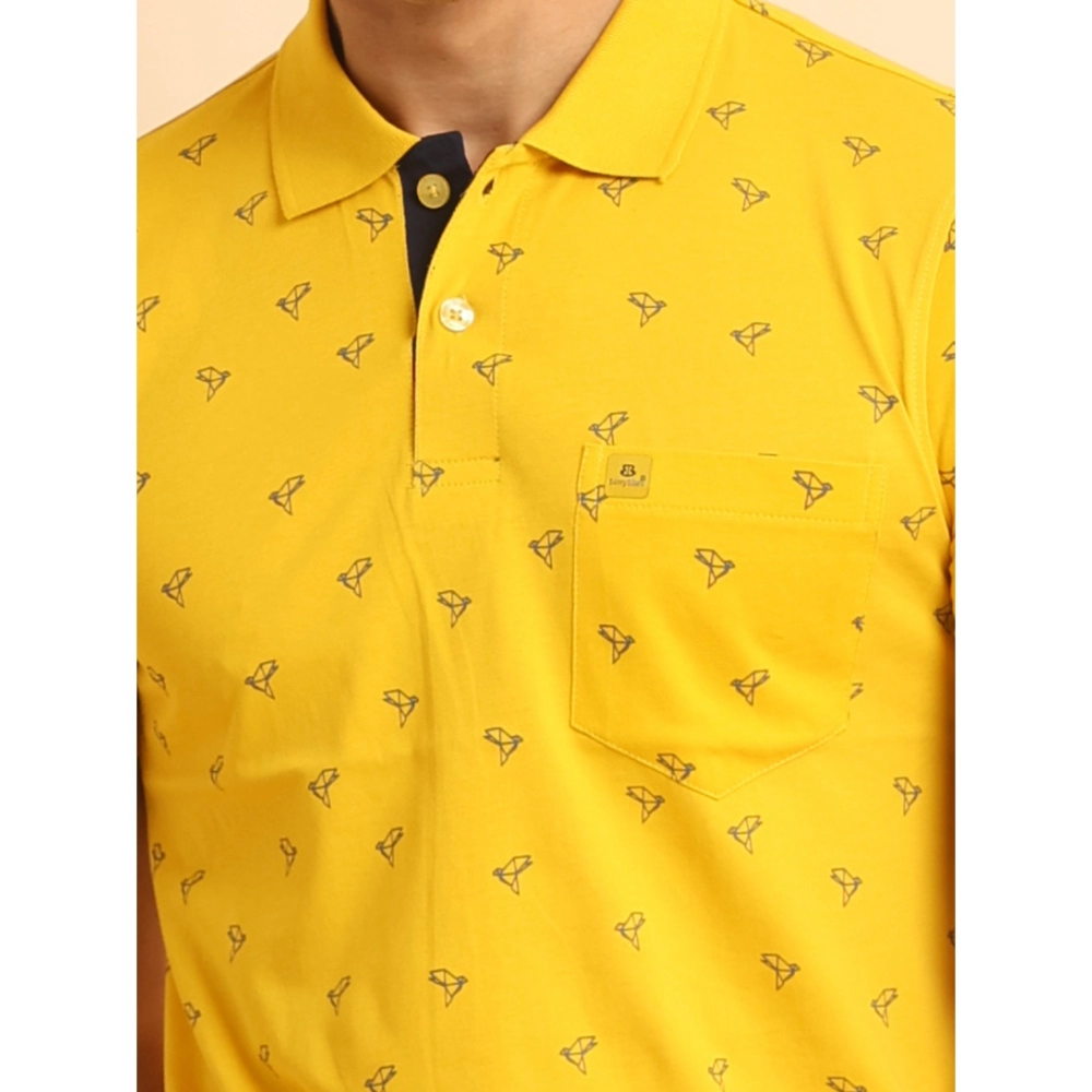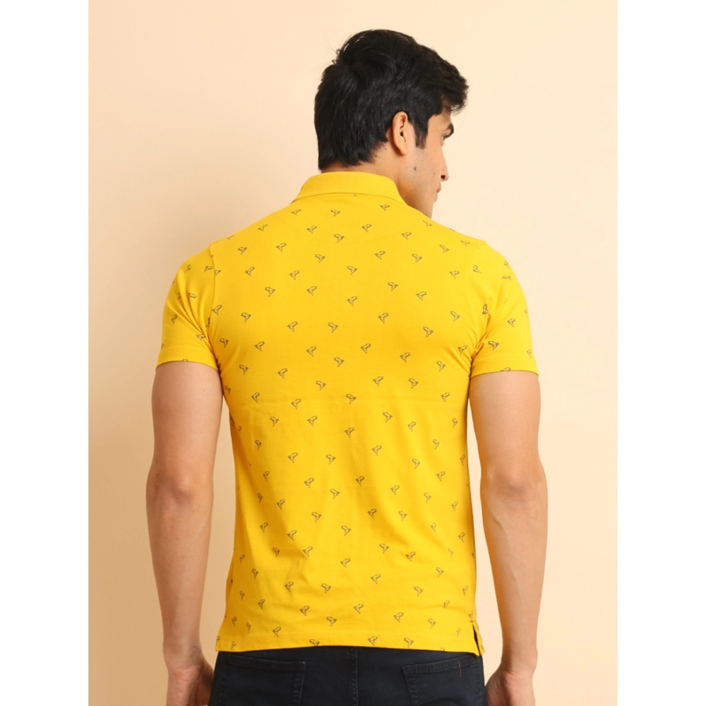 Men’s Casual Cotton Printed Polo Neck Half Sleeve T-Shirt (Yellow)