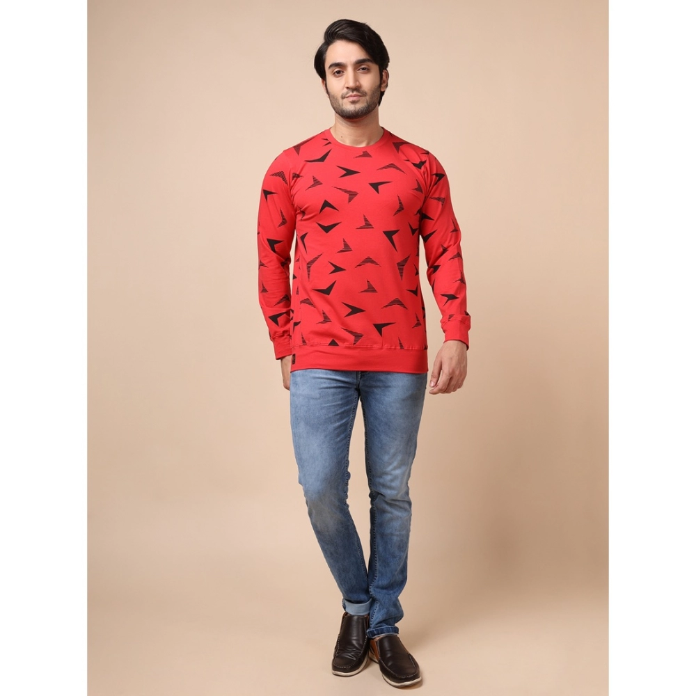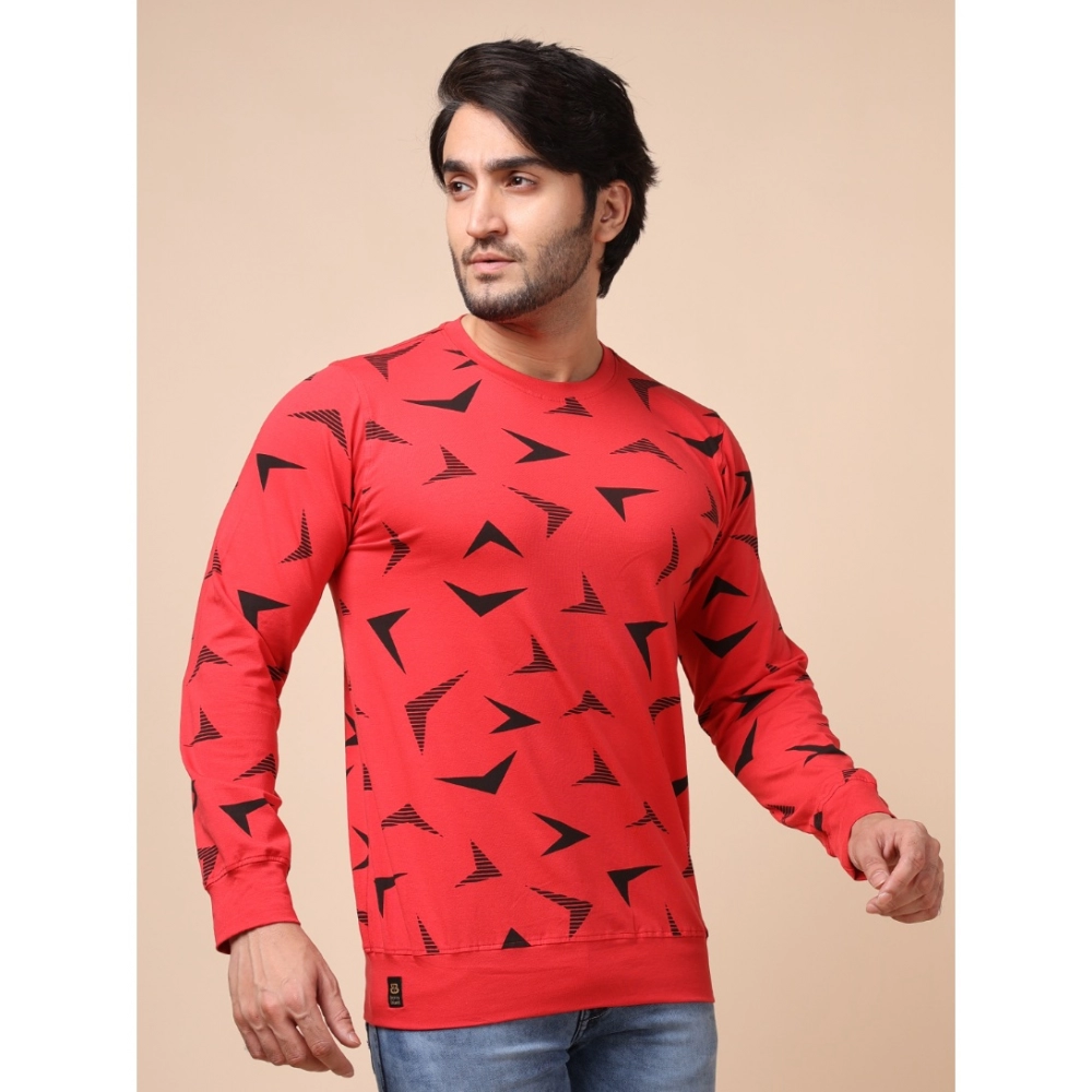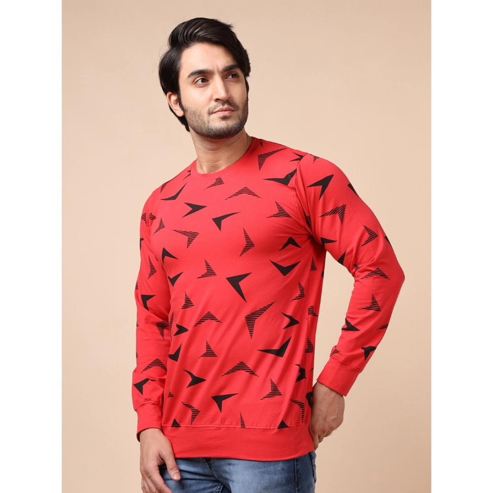 Men’s Casual Cotton Printed Round Neck Full Sleeve T-Shirt (Red)