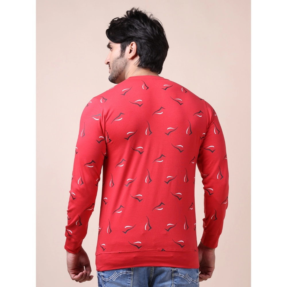 Men’s Casual Cotton Printed Round Neck Full Sleeve T-Shirt (Red)