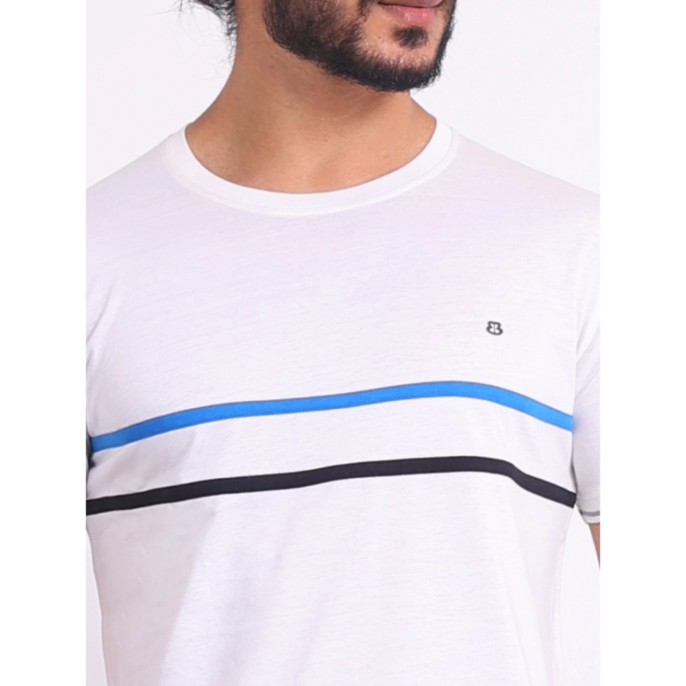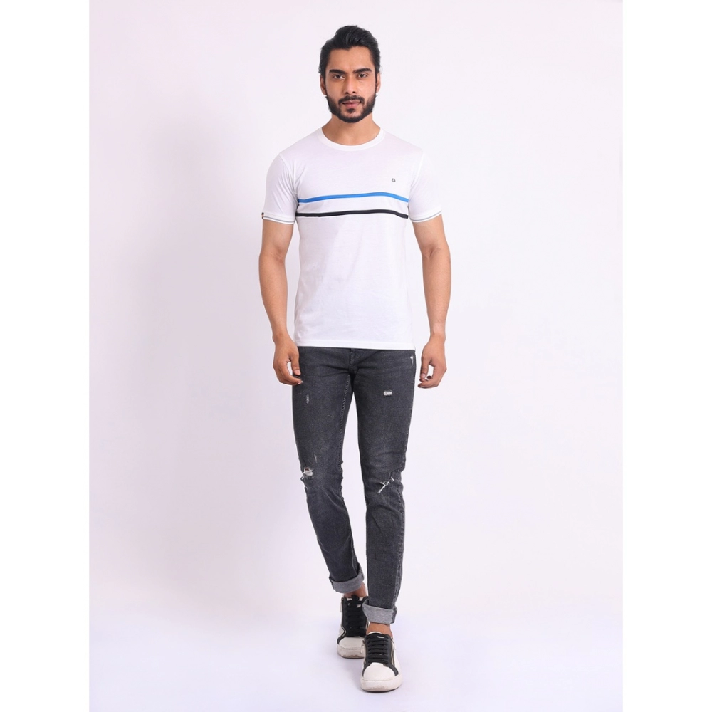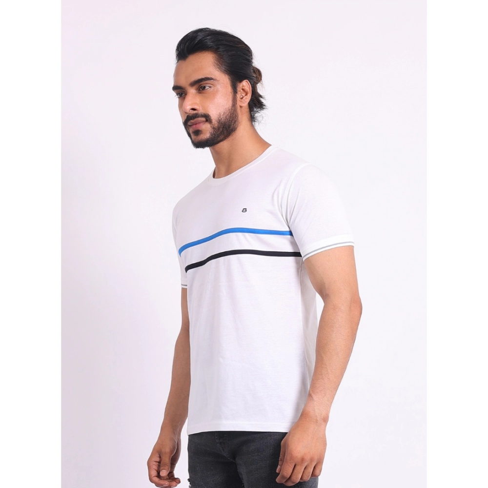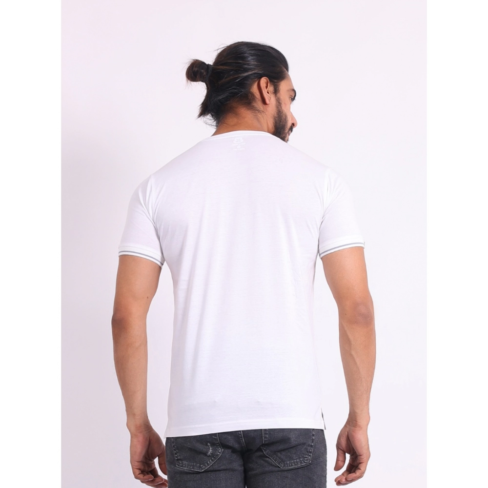 Men’s Casual Cotton Printed Round Neck Half Sleeve T-Shirt (White)