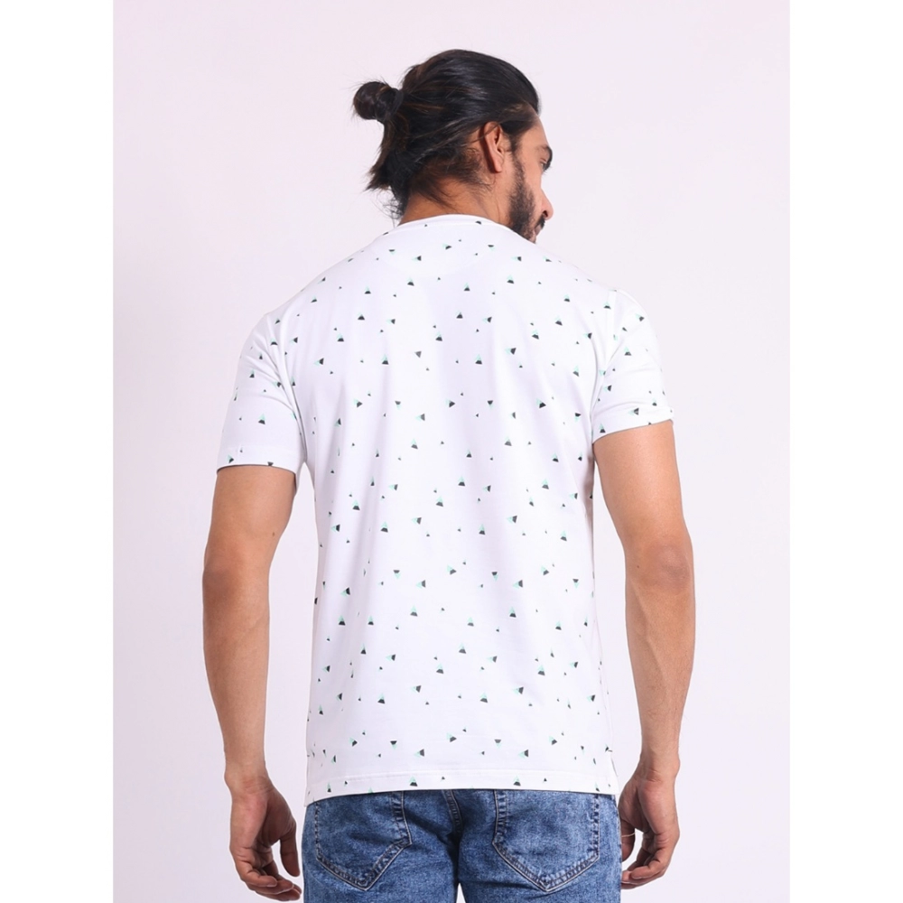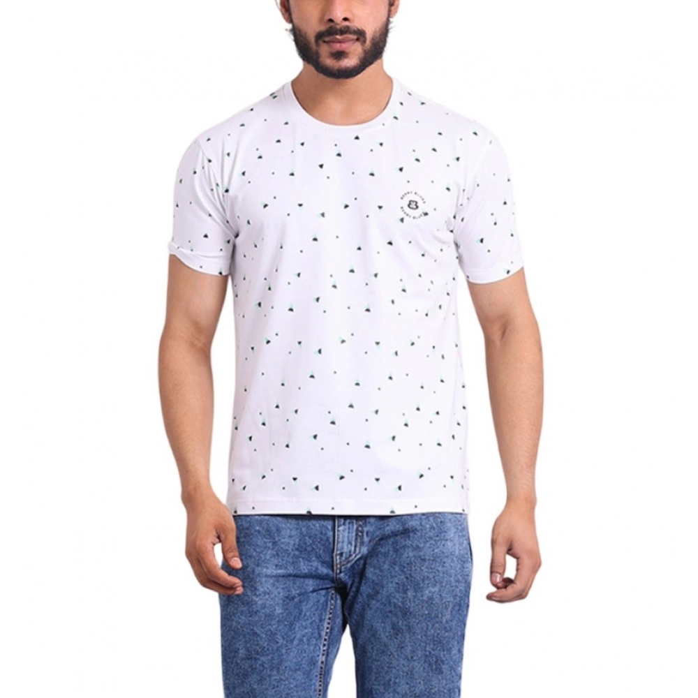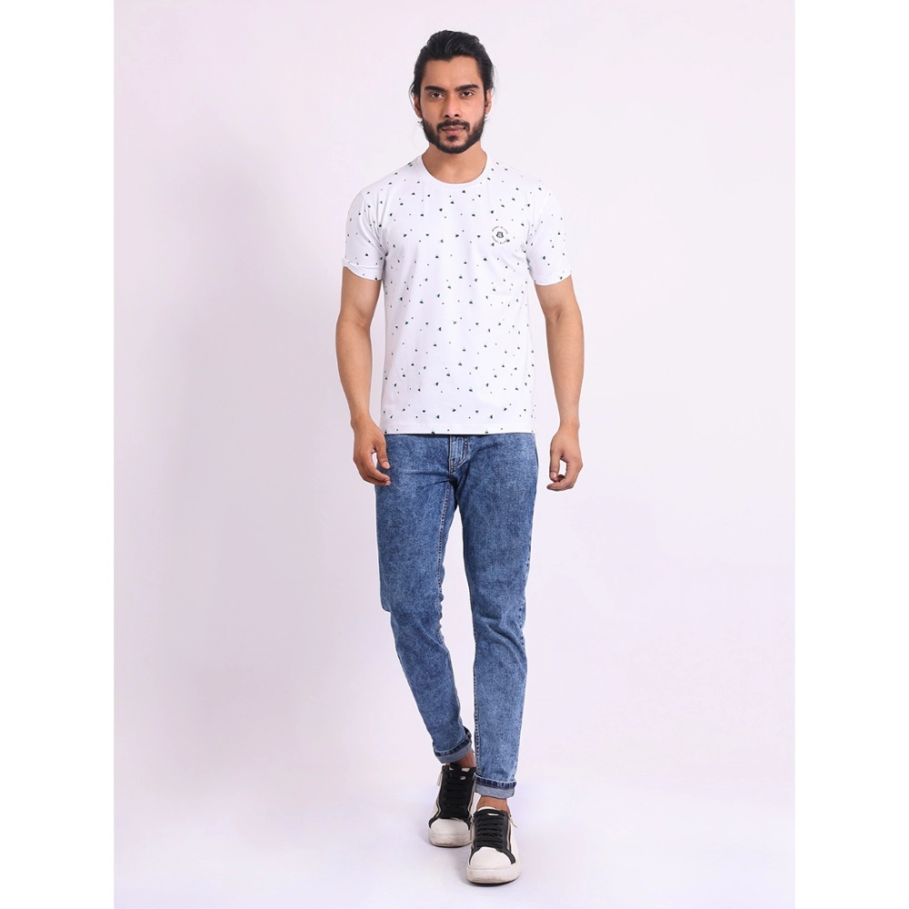 Men’s Casual Cotton Printed Round Neck Half Sleeve T-Shirt (White)