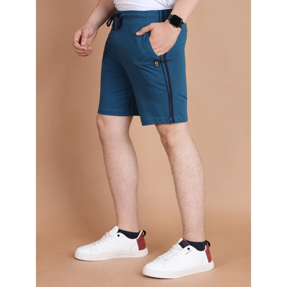 Men’s Casual Cotton Striped Above knee Shorts (Blue)