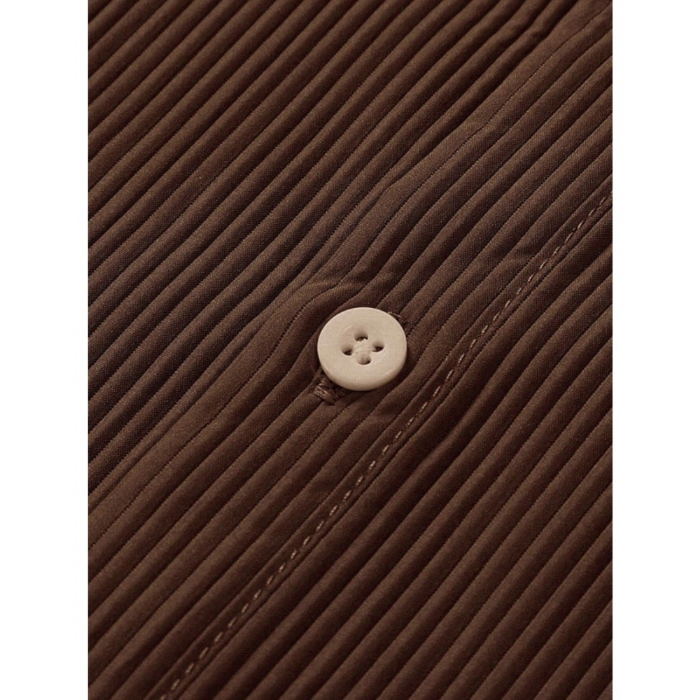 Men’s Casual Short Sleeve Striped Cotton Blended Shirt (Brown)