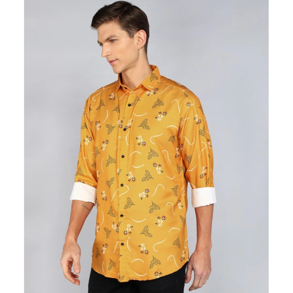 Men’s Casual Viscose Rayon Printed Full Sleeve Collar Shirt (Yellow)