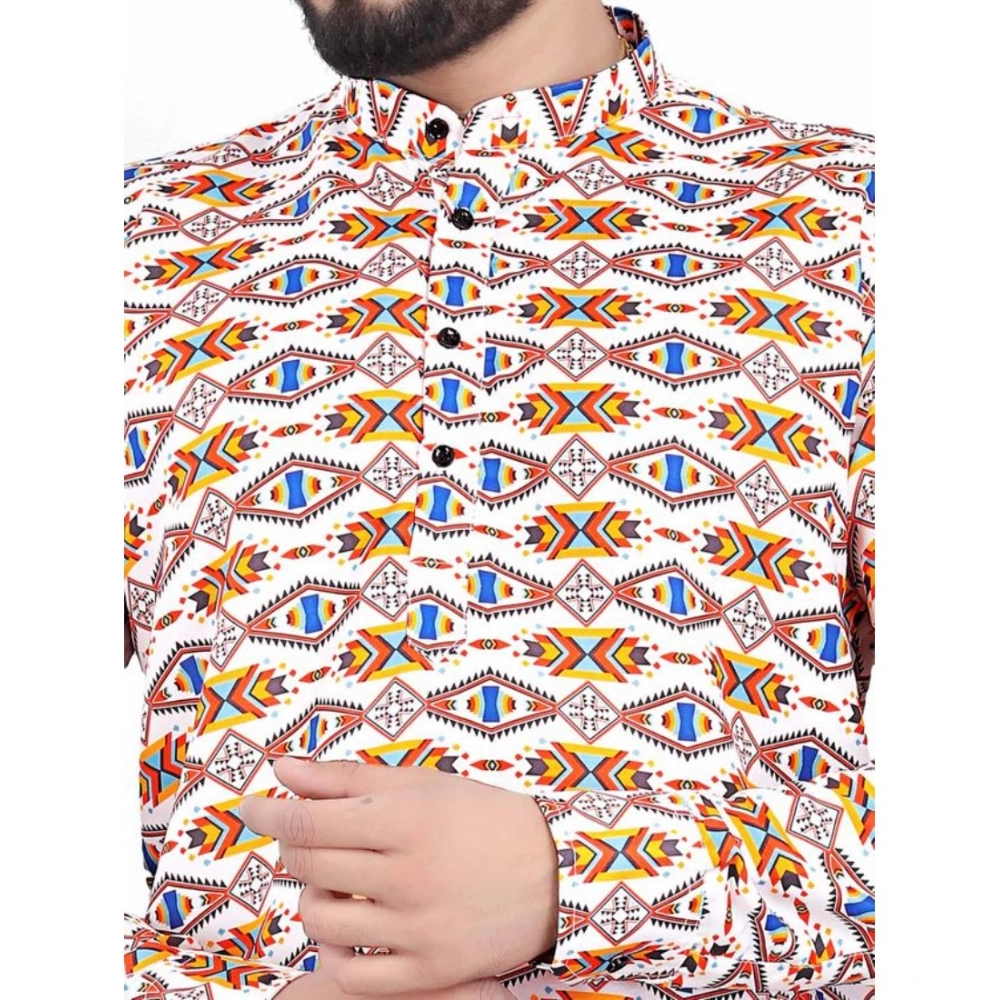 Men’s Cotton Blended Printed Full Sleeve Shortkurta (Multicolor)