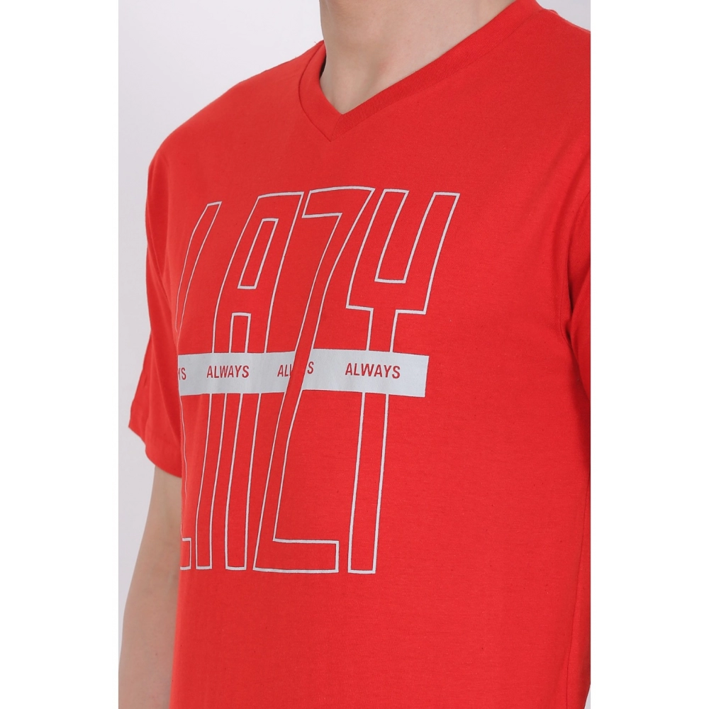 Men’s Cotton Jersey V Neck Printed Tshirt (Red)