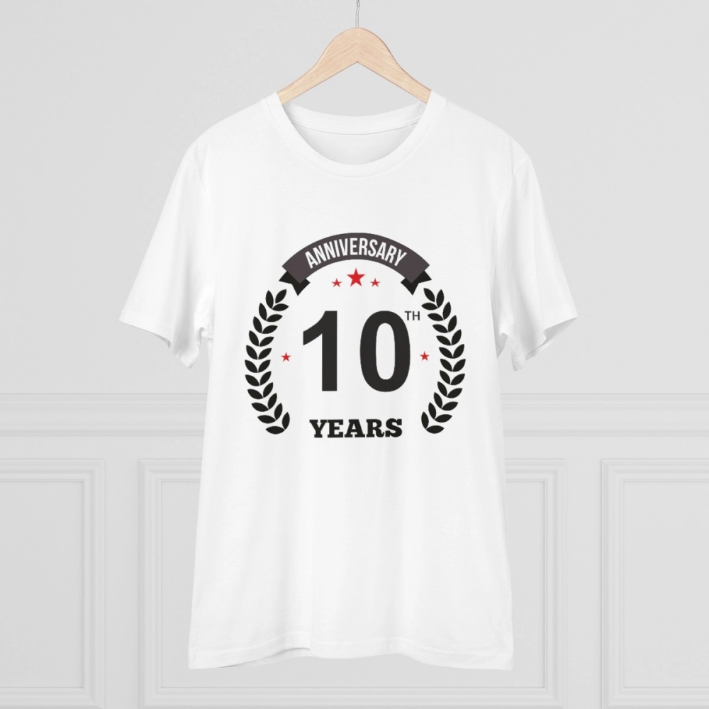Men’s PC Cotton 10th Anniversary Printed T Shirt (Color: White, Thread Count: 180GSM)