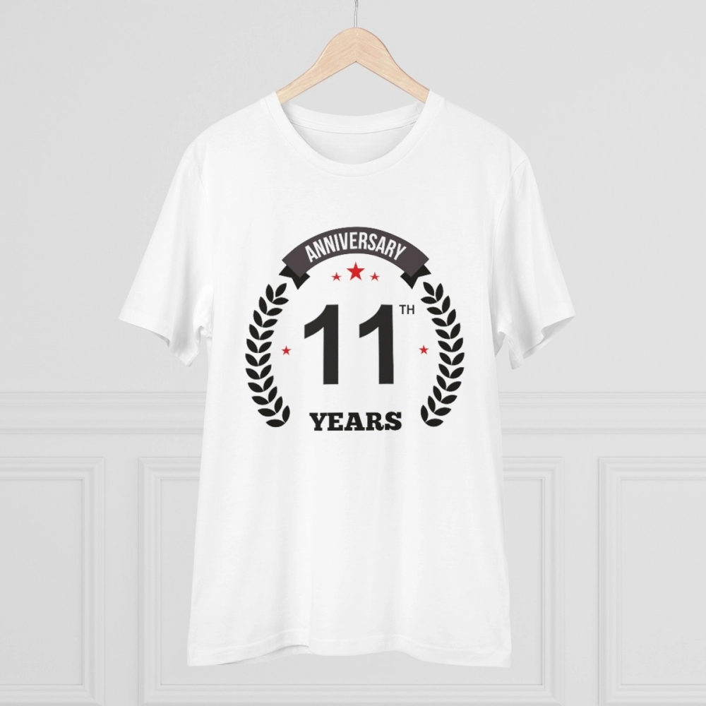 Men’s PC Cotton 11th Anniversary Printed T Shirt (Color: White, Thread Count: 180GSM)