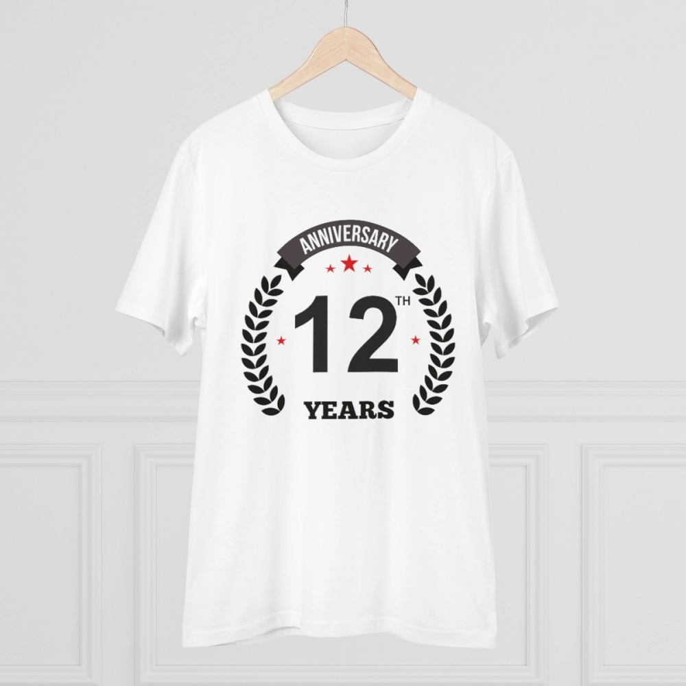 Men’s PC Cotton 12th Anniversary Printed T Shirt (Color: White, Thread Count: 180GSM)