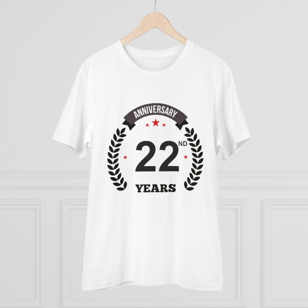 Be the first to review “Men’s PC Cotton 22nd Anniversary Printed T Shirt (Color: White, Thread Count: 180GSM)”