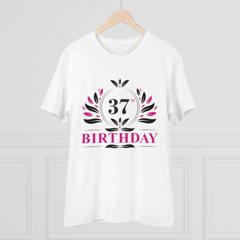 Men’s PC Cotton 37th Birthday Printed T Shirt (Color: White, Thread Count: 180GSM)