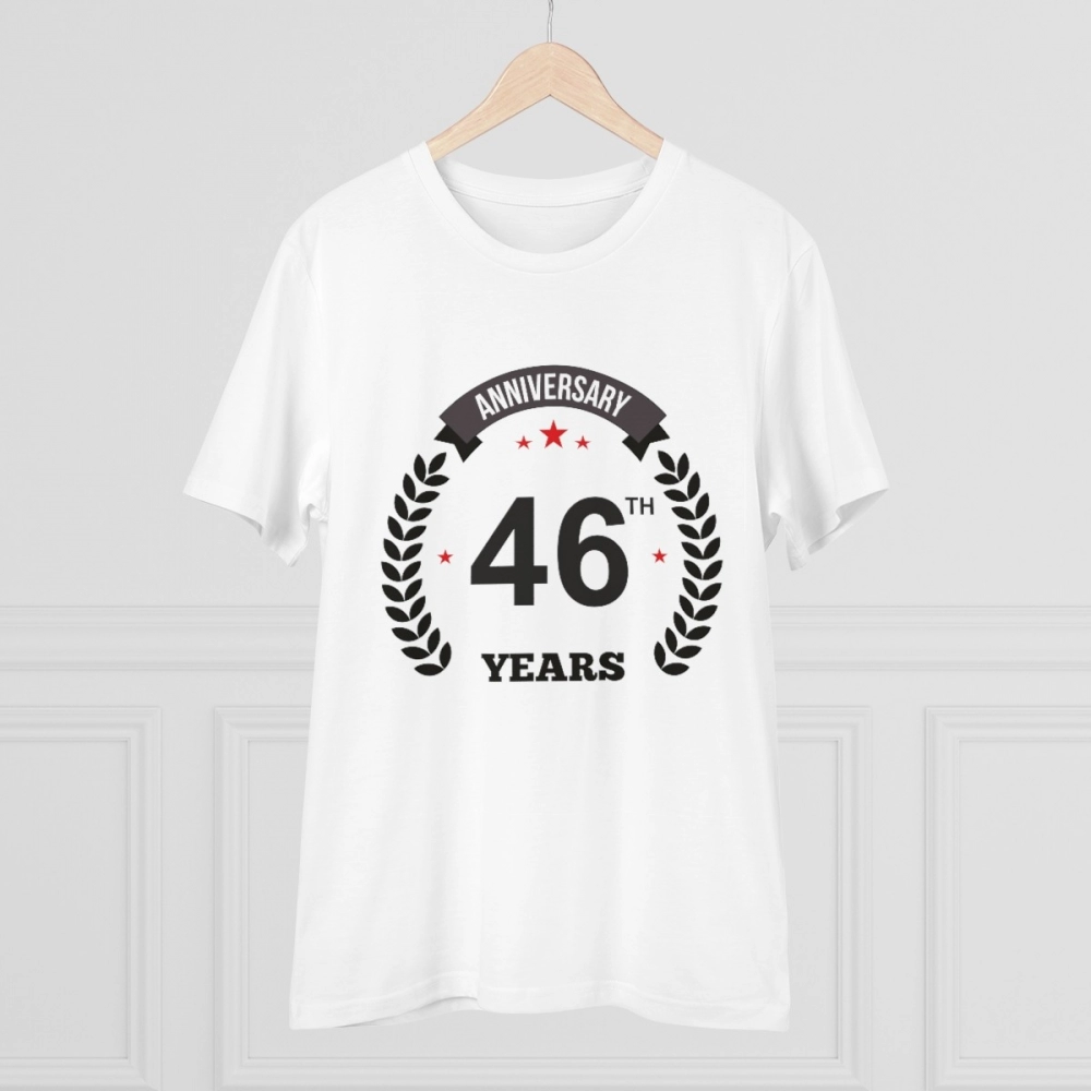 Men’s PC Cotton 46th Anniversary Printed T Shirt (Color: White, Thread Count: 180GSM)