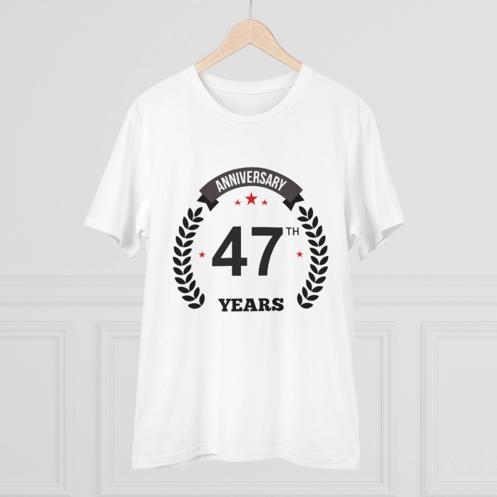 Men’s PC Cotton 47th Anniversary Printed T Shirt (Color: White, Thread Count: 180GSM)
