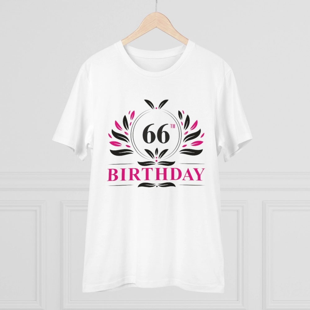 Men’s PC Cotton 66th Birthday Printed T Shirt (Color: White, Thread Count: 180GSM)