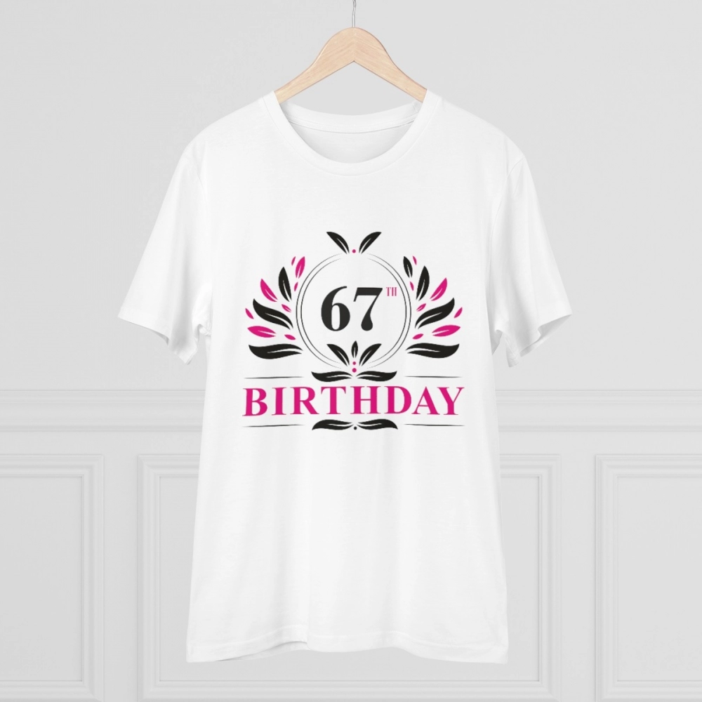 Men’s PC Cotton 67th Birthday Printed T Shirt (Color: White, Thread Count: 180GSM)
