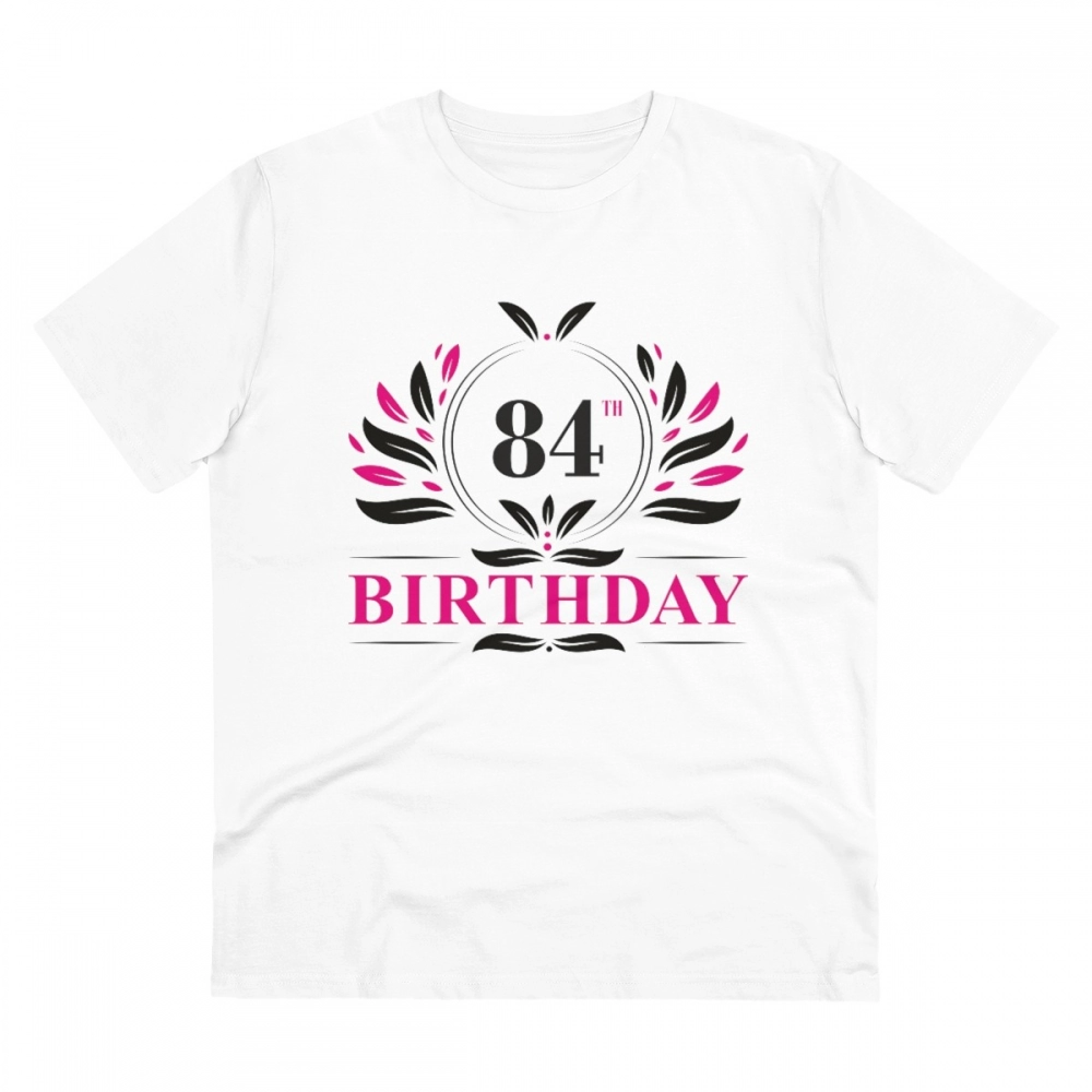 Men’s PC Cotton 84th Birthday Printed T Shirt (Color: White, Thread Count: 180GSM)