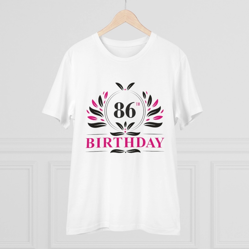 Be the first to review “Men’s PC Cotton 86th Birthday Printed T Shirt (Color: White, Thread Count: 180GSM)”