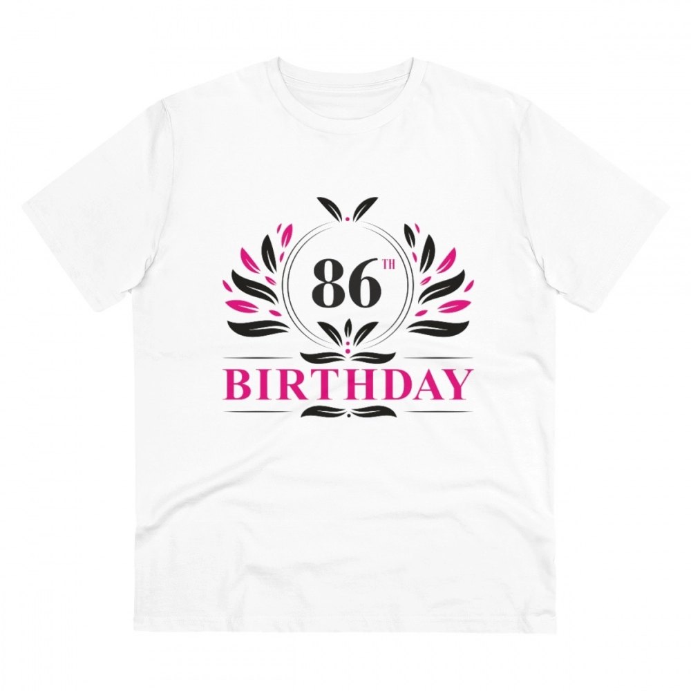 Men’s PC Cotton 86th Birthday Printed T Shirt (Color: White, Thread Count: 180GSM)