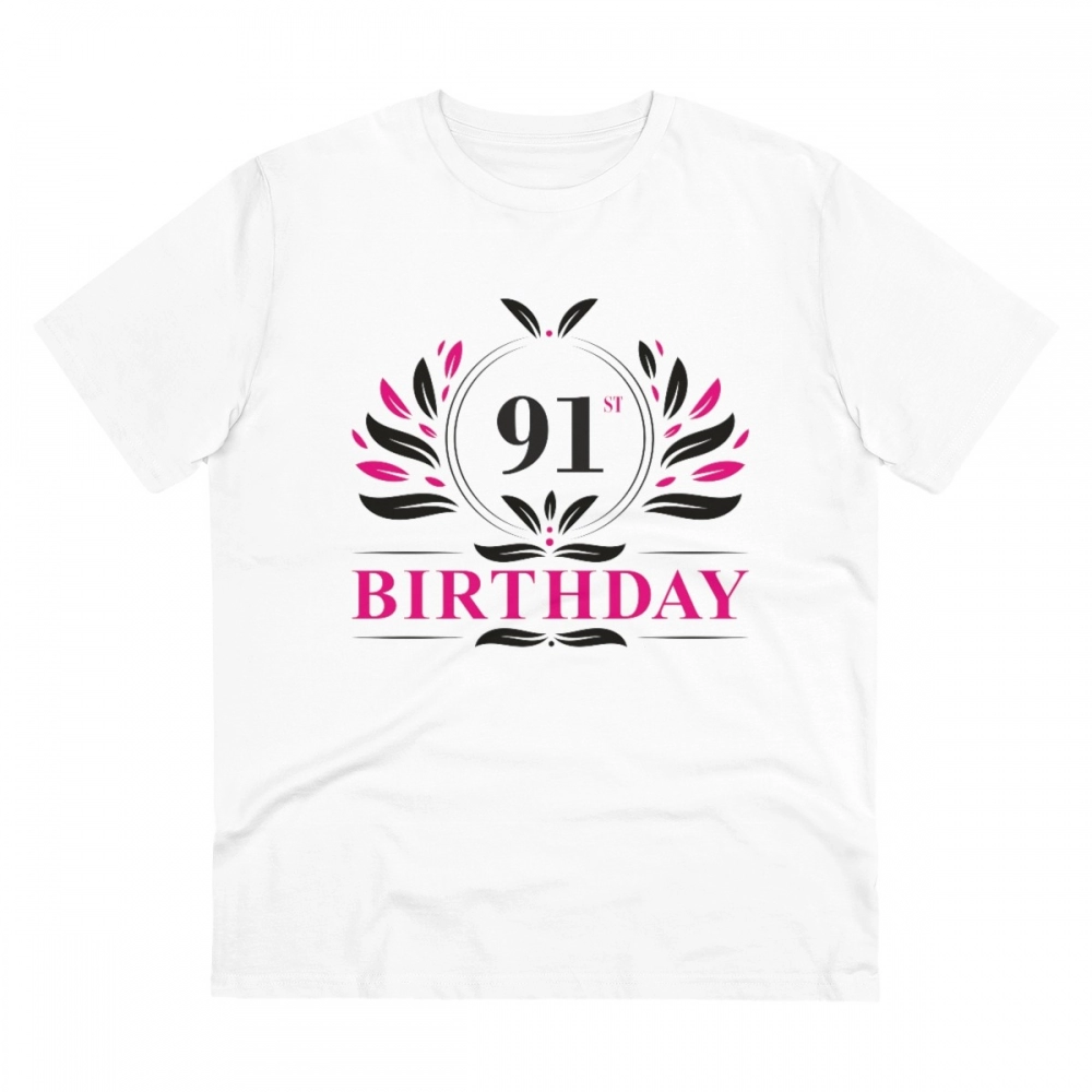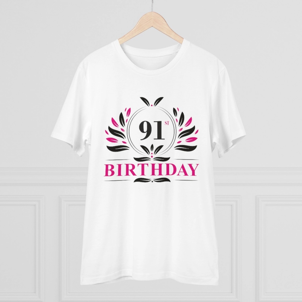 Men’s PC Cotton 91st Birthday Printed T Shirt (Color: White, Thread Count: 180GSM)